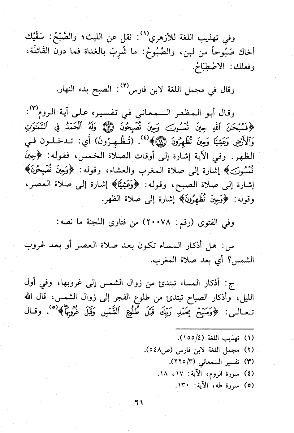 {وَسَبِّحْ بِحَمْدِ رَبِّكَ قَبْلَ طُلُوعِ الشَّمْسِ وَقَبْلَ غُرُوبِهَا} [طه: 130] وقال