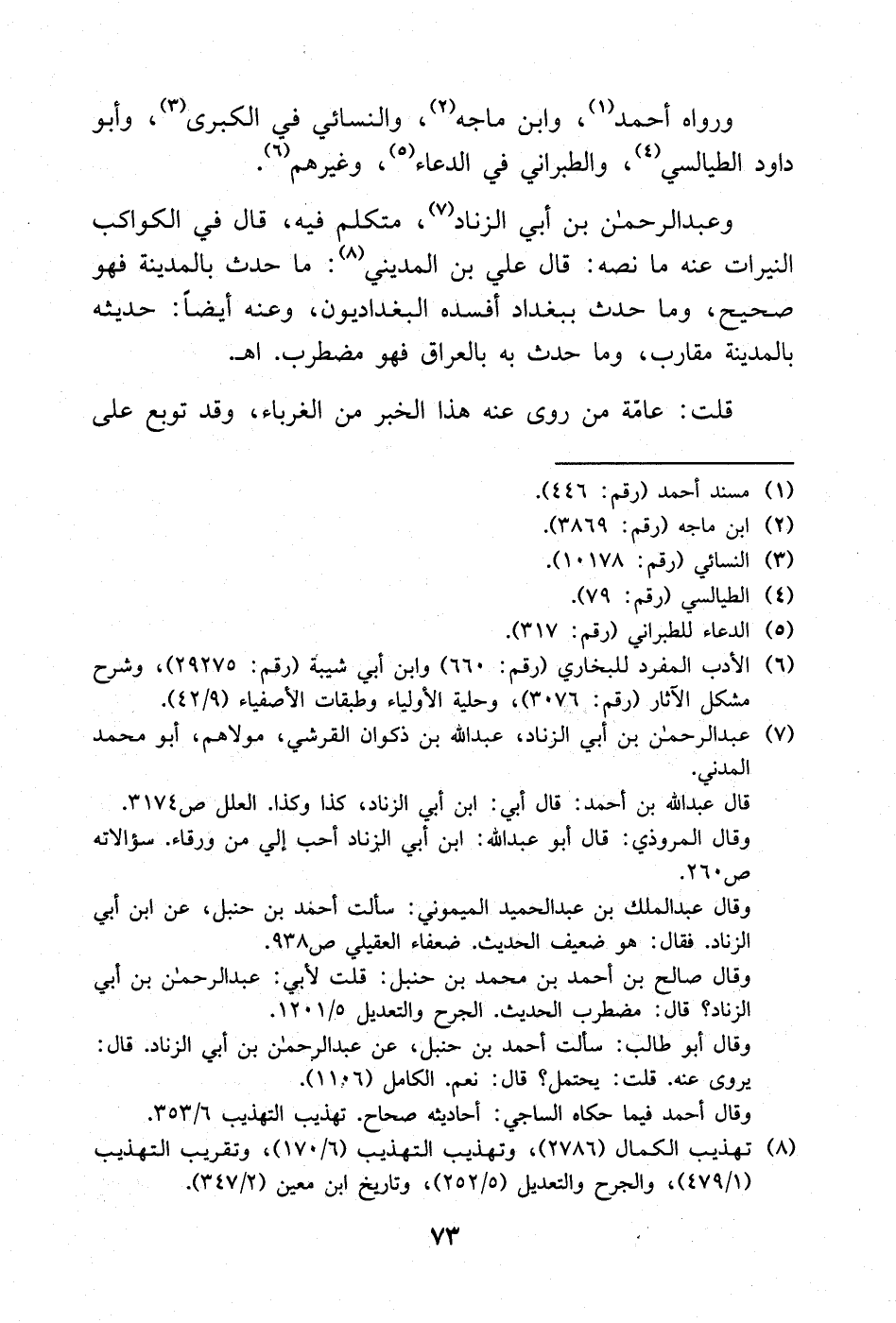 (¬6) الأدب المفرد للبخاري (رقم: 660) وابن أبي شيبة (رقم: 29275) وشرح مشكل الآثار (رقم: 3076) وحيلة الأولياء وطبقات الأصفياء (9/ 42).