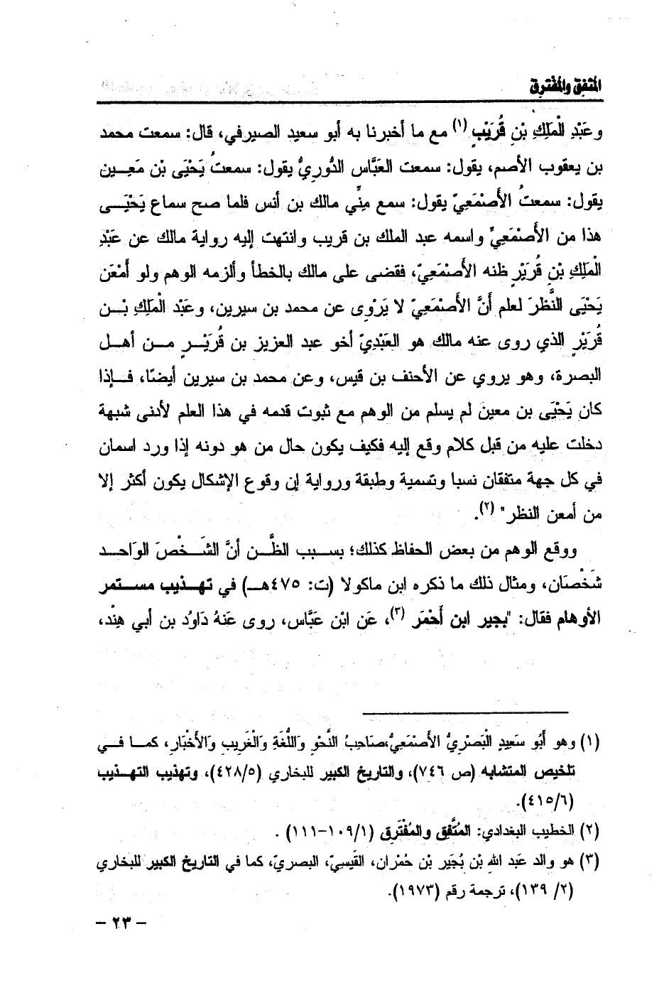 (¬2) الخطيب البغدادي: المُتَّفِق والمُفْتَرِق (1/ 109 - 111).