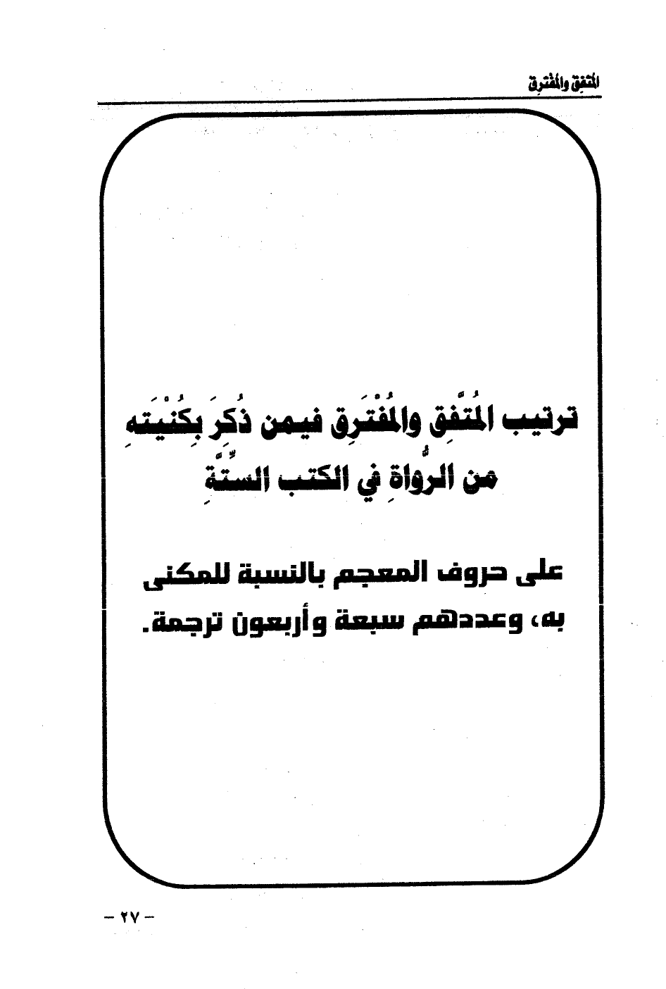 ترتيب المُتَّفِق والمُفْتَرِق فيمن ذُكِرَ بِكُنْيَتهِ من الرُّواةِ في الكتب السِّتَّةِ على حروف المعجم بالنسبة للمكنى به،