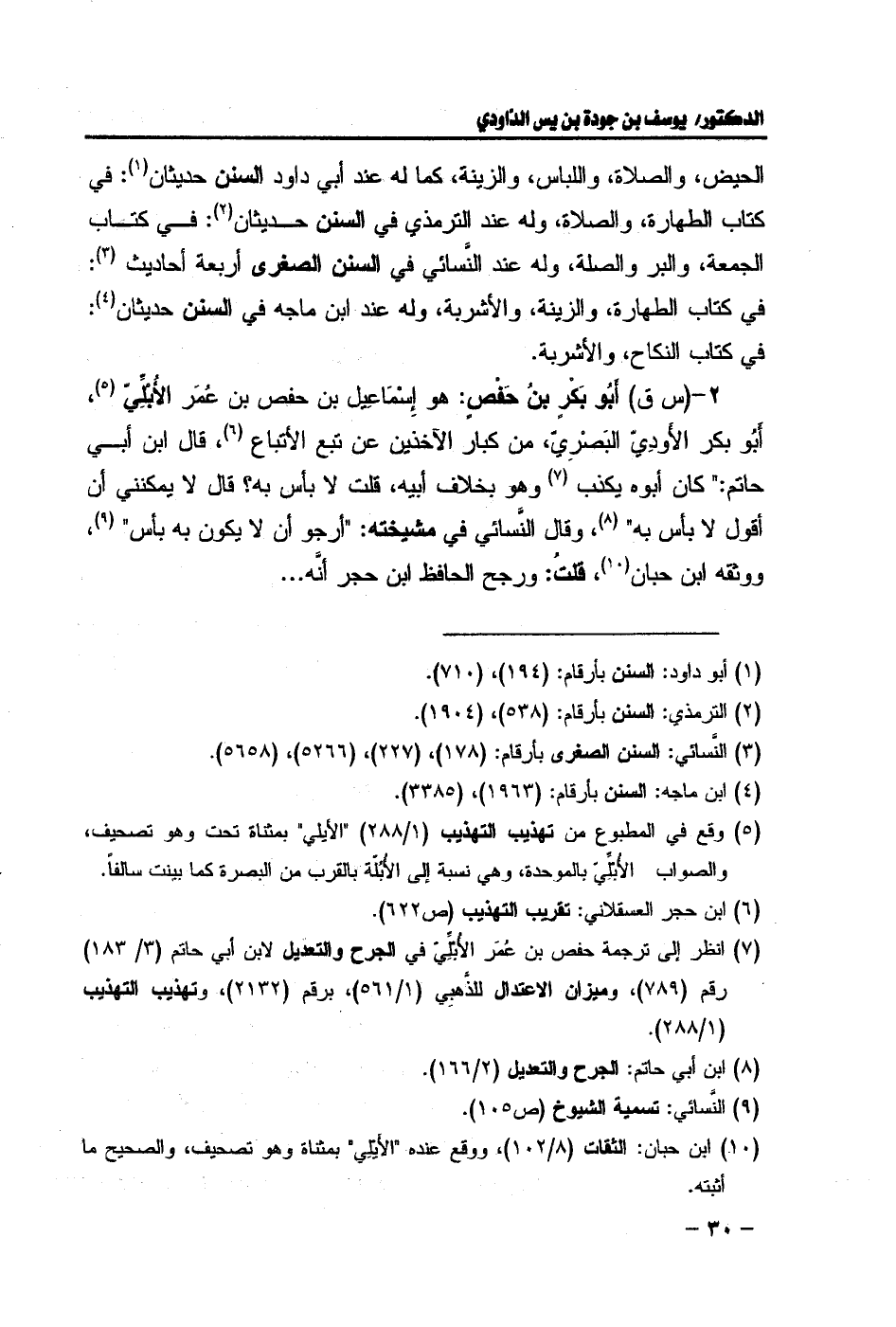 (¬7) انظر إلى ترجمة حفص بن عُمَر الأُبْلِِّيّ في الجرح والتعديل لابن أبي حاتم (3/ 183) رقم (789)، وميزان الاعتدال للذَّهبِي (1/ 561)، برقم (2132)، وتهذيب التهذيب (1/ 288).