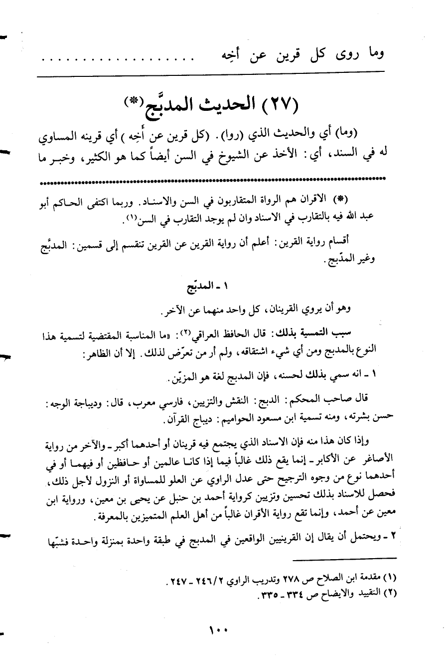 مَا أَي والْحَدِيث الَّذِي روا كل قرين عَن أخه أَي قرينه الْمسَاوِي لَهُ فِي السَّنَد أَي الْأَخْذ عَن الشُّيُوخ فِي السن أَيْضا كَمَا هُوَ الْكثير وَخبر مَا