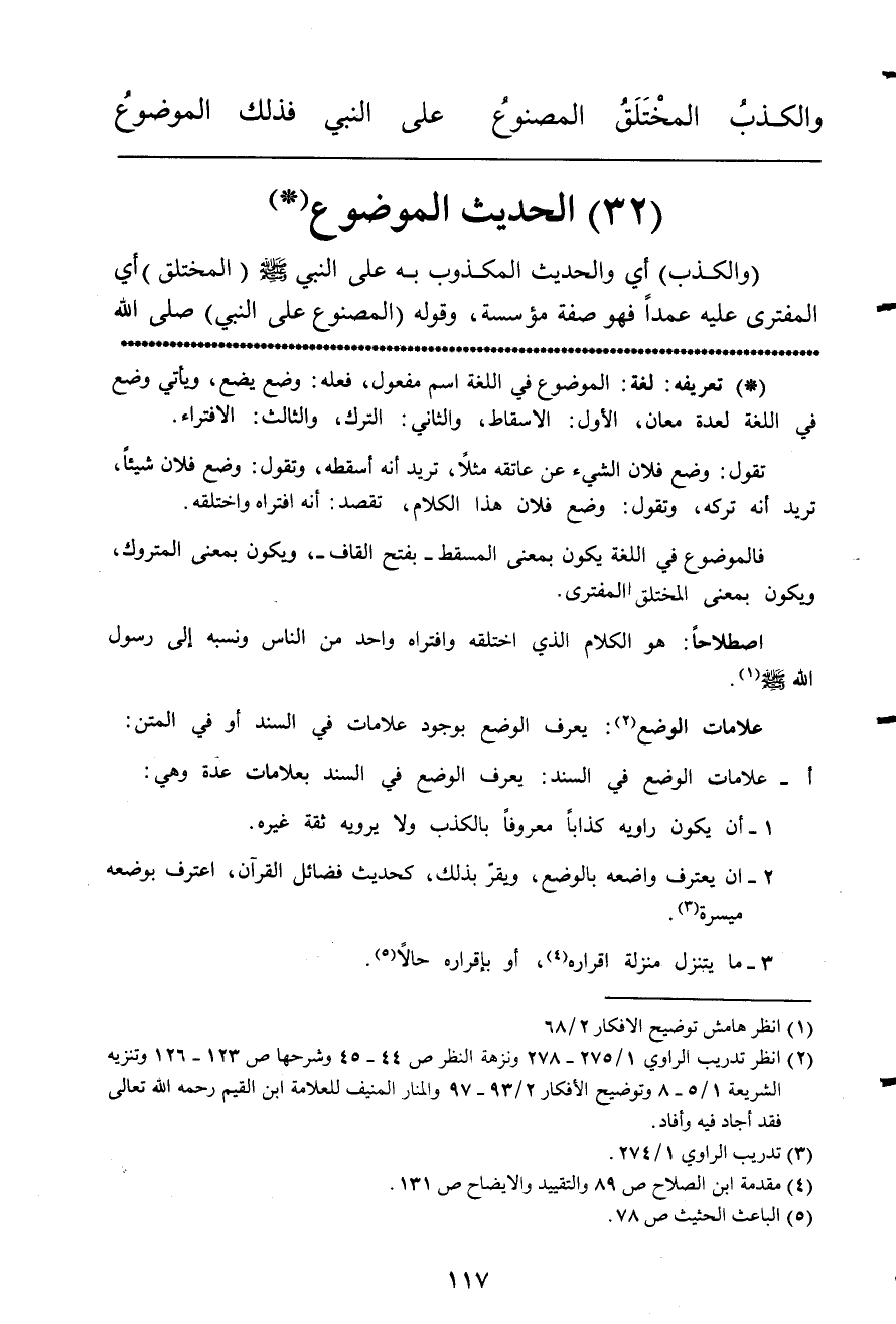 وَالْكذب أَي والْحَدِيث المكذوب بِهِ على النَّبِي صلى الله عَلَيْهِ وَسلم المختلق أَي المفترى عَلَيْهِ عمدا فَهُوَ صفة مؤسسة وَقَوله الْمَصْنُوع على النَّبِي صلى الله عَلَيْهِ وَسلم
