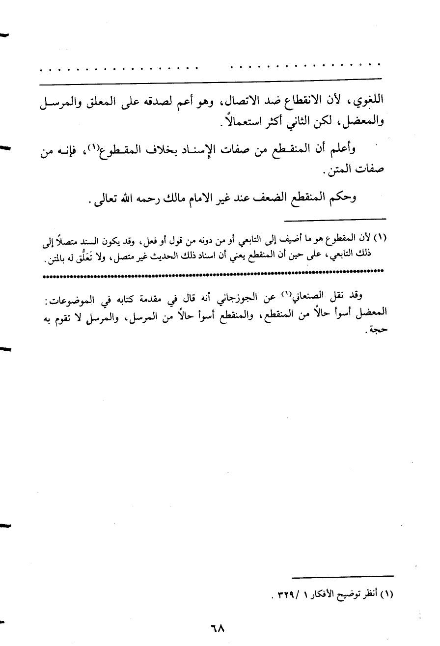 وَحكم الْمُنْقَطع الضعْف عِنْد غير الامام مَالك مَالك رَحمَه الله تَعَالَى
