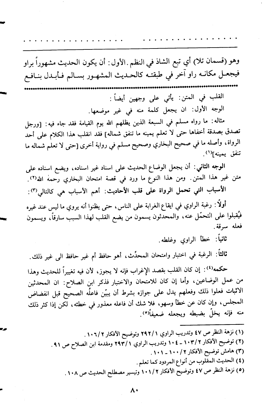 وَهُوَ قِسْمَانِ تَلا أَي تبع الشاذ فِي النّظم الأول أَن يكون الحَدِيث مَشْهُورا براو فَيجْعَل مَكَانَهُ راو آخر فِي طبقته كالحديث الْمَشْهُور بسالم فأبدل بِنَافِع