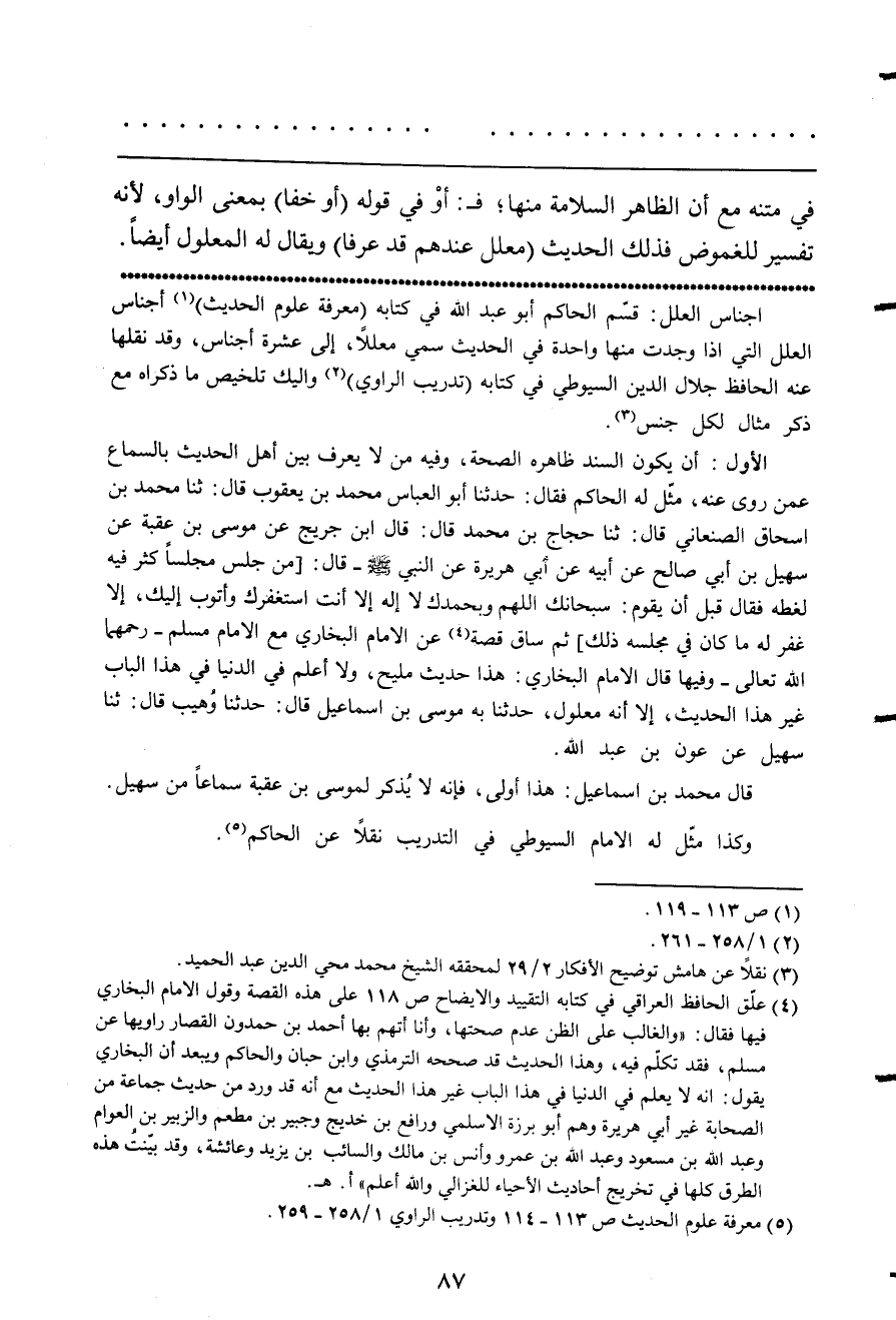 فِي منته مَعَ أَن الظَّاهِر السَّلامَة مِنْهَا ف أَو فِي قَوْله أَو خفا بِمَعْنى الْوَاو لِأَنَّهُ تَفْسِير للغموض فَذَلِك الحَدِيث مُعَلل عِنْدهم قد عرفا وَيُقَال لَهُ الْمَعْلُول أَيْضا
