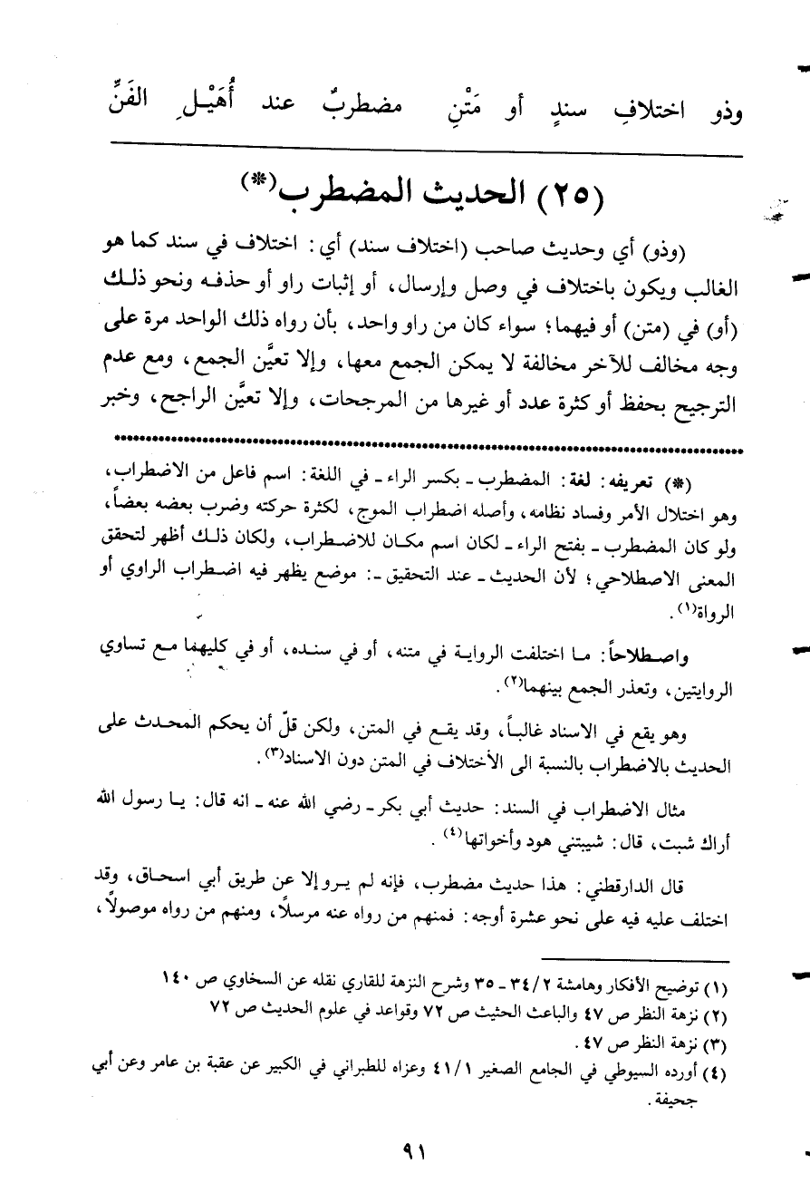 وَذُو أَي وَحَدِيث صَاحب اخْتِلَاف سَنَد أَي اخْتِلَاف فِي سَنَد كَمَا هُوَ الْغَالِب وَيكون باخْتلَاف فِي وصل وإرسال أَو إِثْبَات راو أَو حذفه وَنَحْو ذَلِك أَو فِي متن أَو فيهمَا سَوَاء كَانَ من راو وَاحِد بِأَن رَوَاهُ ذَلِك الْوَاحِد مرّة على وَجه مُخَالف للْآخر لَا يُمكن الْجمع مَعهَا وَإِلَّا تعين الْجمع وَمَعَ عدم التَّرْجِيح بِحِفْظ أَو كَثْرَة عدد أَو غَيرهَا من المرجحات وَألا تعين الرَّاجِح وَخبر