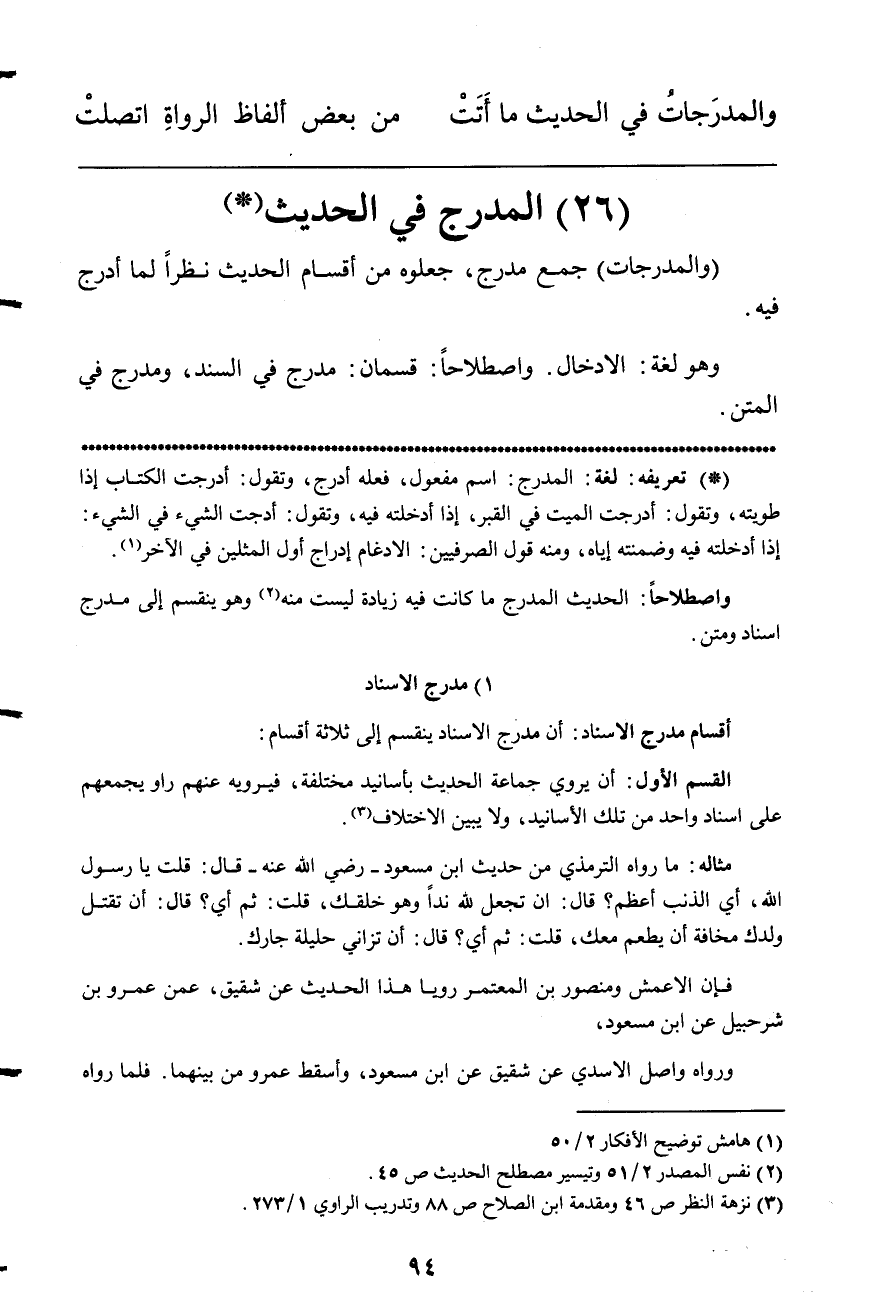 وَهُوَ لُغَة الادخال وصطلاحا قِسْمَانِ مدرج فِي السَّنَد ومدرج فِي الْمَتْن