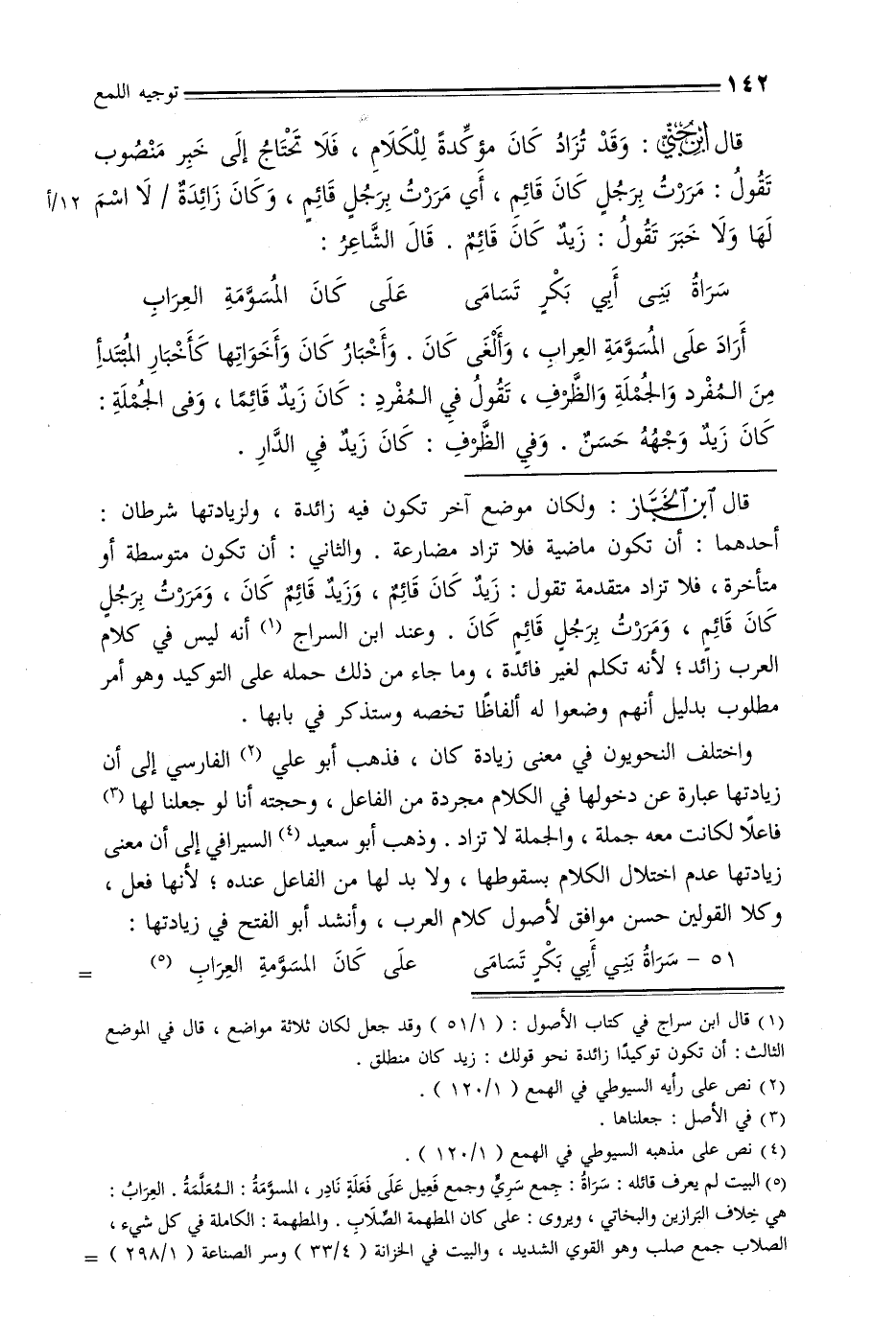 قال ابن جني: وقد تزاد كان مؤكدة للكلام, فلا تحتاج إلى خبر منصوب تقول: مررت برجل كان قائم, أي مررت برجل قائم, وكان زائدة / لا اسم 12/ألها ولا خبر تقولك زيد كان قائم. قال الشاعر: