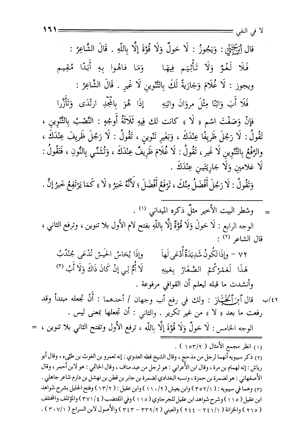 الوجه الخامس: لا حول ولا قوة إلا بالله, ترفع الأول وتفتح الثاني بلا تنوين, =