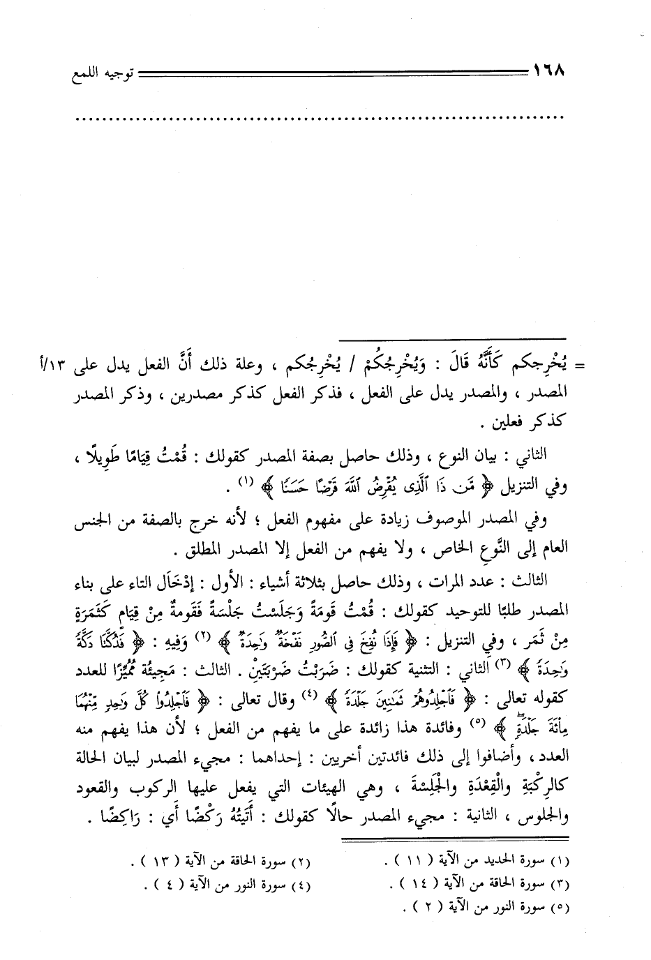 = يخرجكم كأنه قال: ويخرجكم / يخرجكم, وعلة ذلك أن الفعل يدل على 13/أالمصدر, والمصدر يدل على الفعل, فذكر الفعل كذكر مصدرين, وذكر المصدر كذكر فعلين.