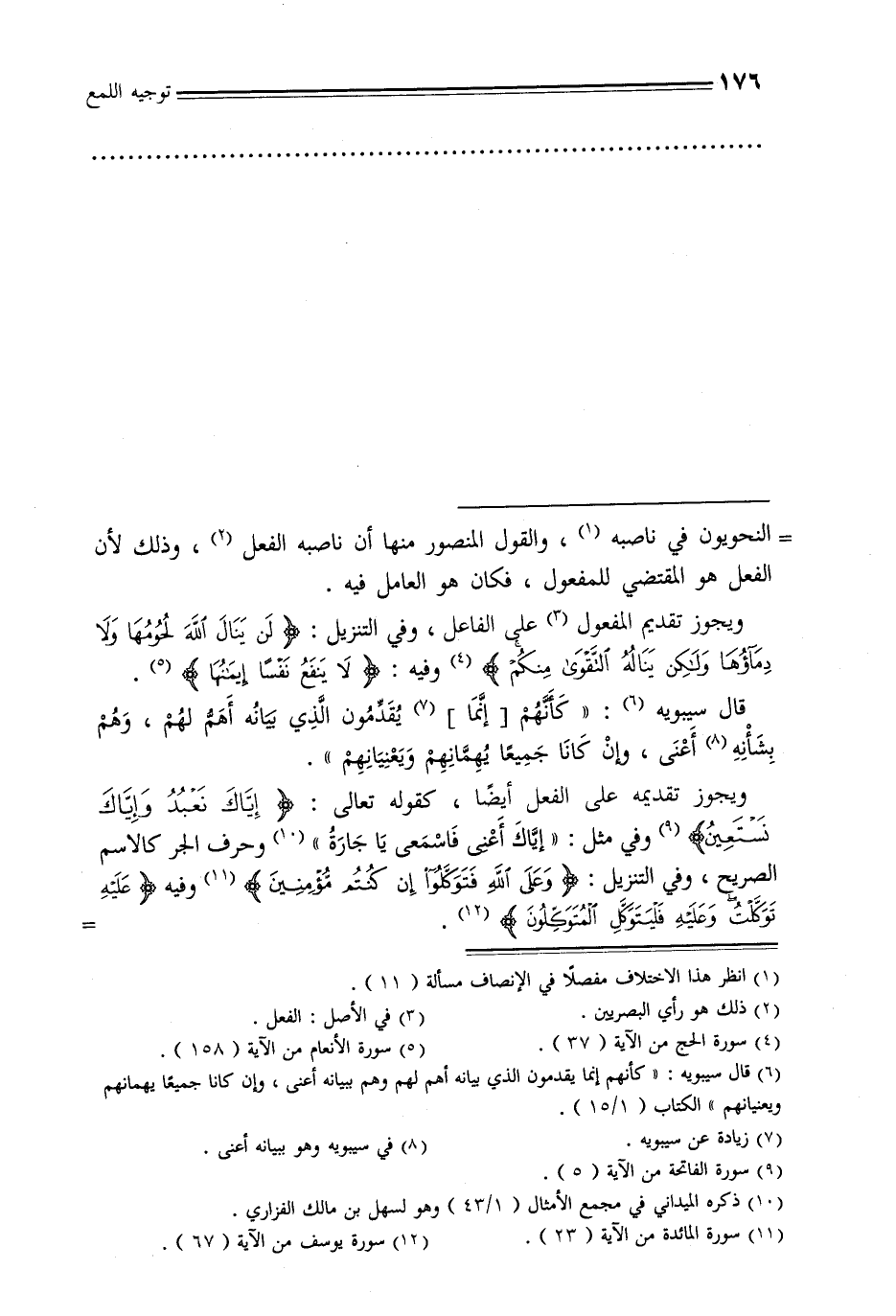 ويجوز تقديم المفعول على الفاعل, وفي التنزيل: {لن ينال الله لحومها ولا دماؤها ولكن يناله التقوى منكم} وفيه: {لا ينفع نفسًا إيمانها}.