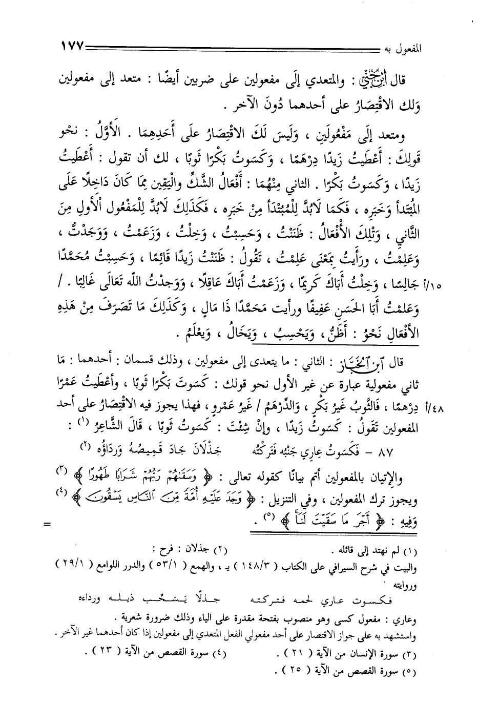 قال ابن جني: والمتعدي إلى مفعولين على ضربين أيضًا: متعد إلى مفعولين ولك الاقتصار على أحدهما دون الآخر.