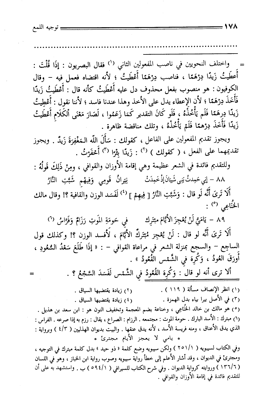 ألا ترى أنه لو قال: وسبب النار [فيهم] لفسد الوزن والقافية؟ ! وقال مالك الخناعي: