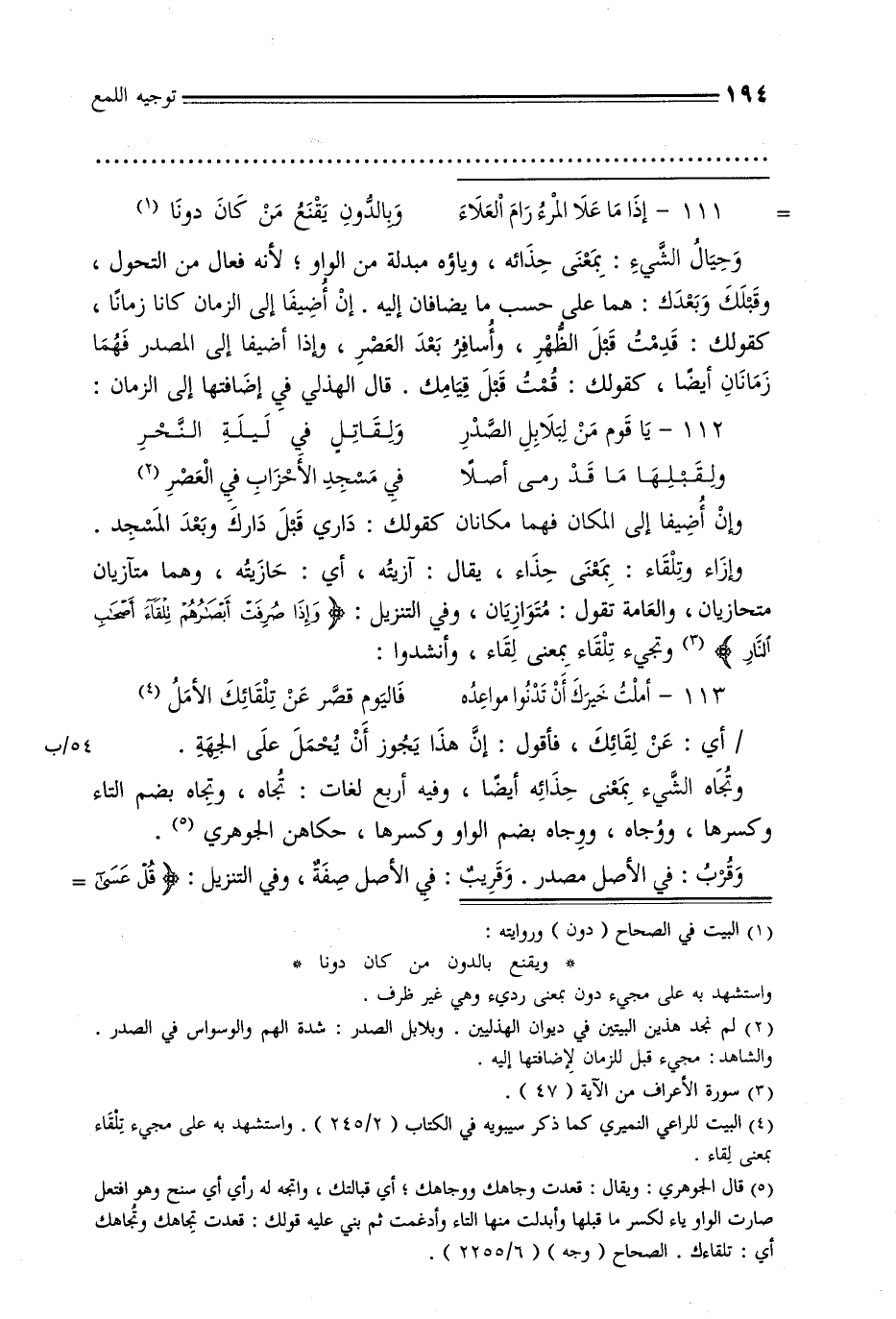 /أي: عن لقائك, فأقول: إن هذا يجوز أن يحمل على الجهة. ... 54/ب