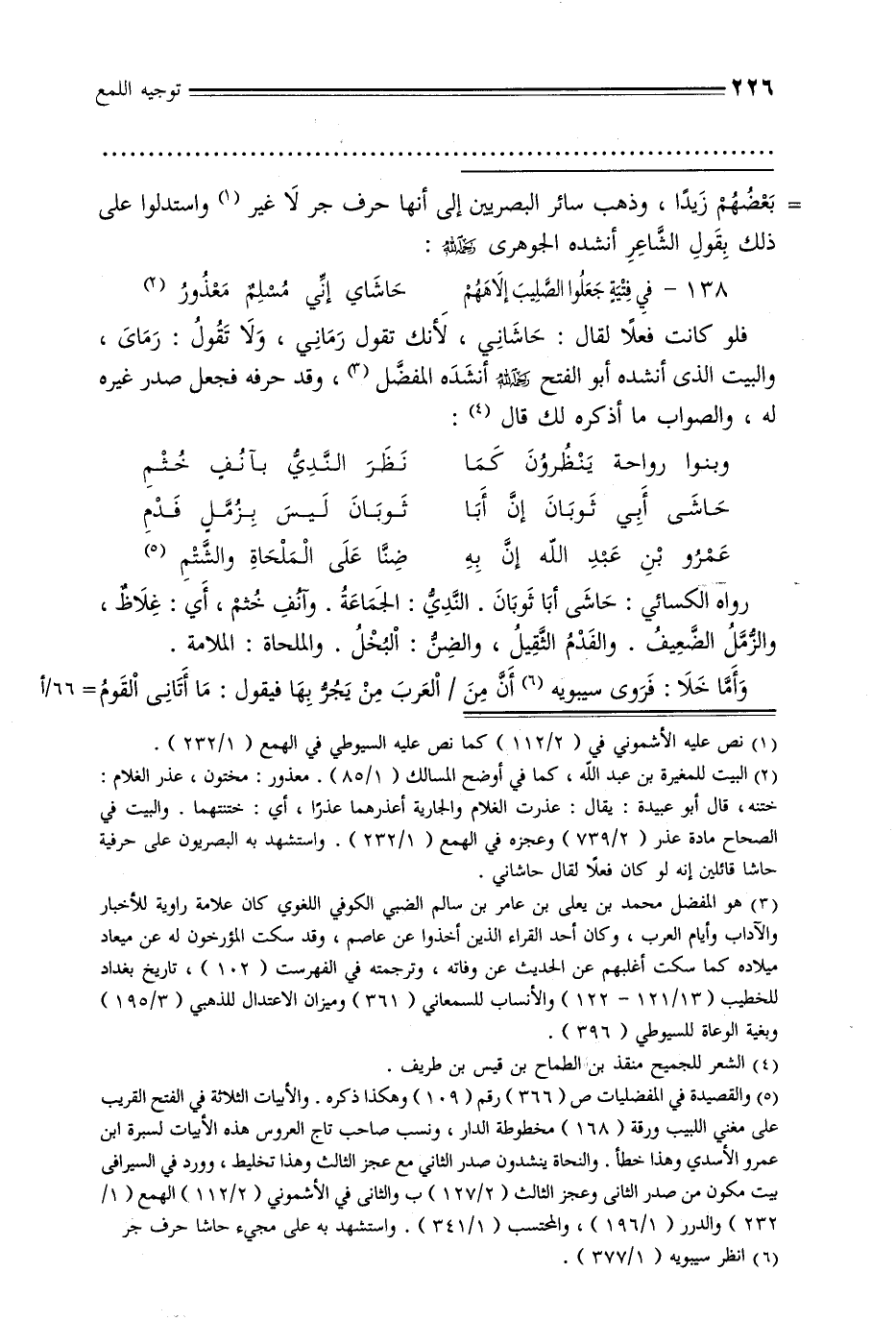 فلو كانت فعلًا لقال: حاشاني, لأنك تقول زماني, ولا تقول: رماى, والبيت الذي أنشده أبو الفتح رحمه الله أنشده المفضل, وقد حرفه فجعل صدر غيره له, والصواب ما أذكره لك قال: