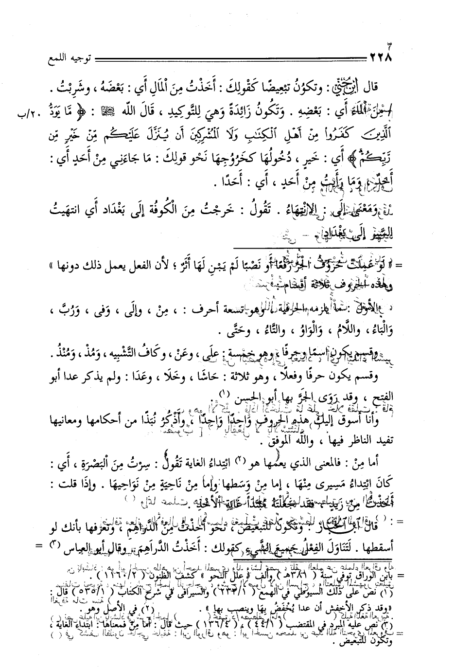 أما من: فالمعنى الذي يعمها هو ابتداء الغاية تقول: سرت من البصرة, أي: كان ابتداء مسيري منها, إما من وسطها وإما من ناحية من نواحيها. وإذا قلت: أخذت من زيد, فقد جعلته مبتدأ غاية الأخذ.