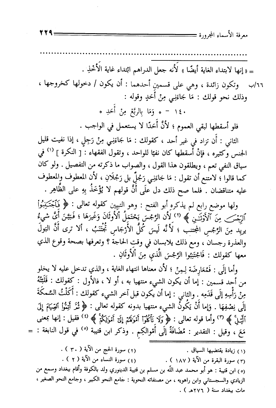 66/ب وتكون زائدة, وهي على قسمين أحدهما: أن يكون/ دخولها كخروجها, وذلك نحو قولك: ما جاءني من أحد وقوله: