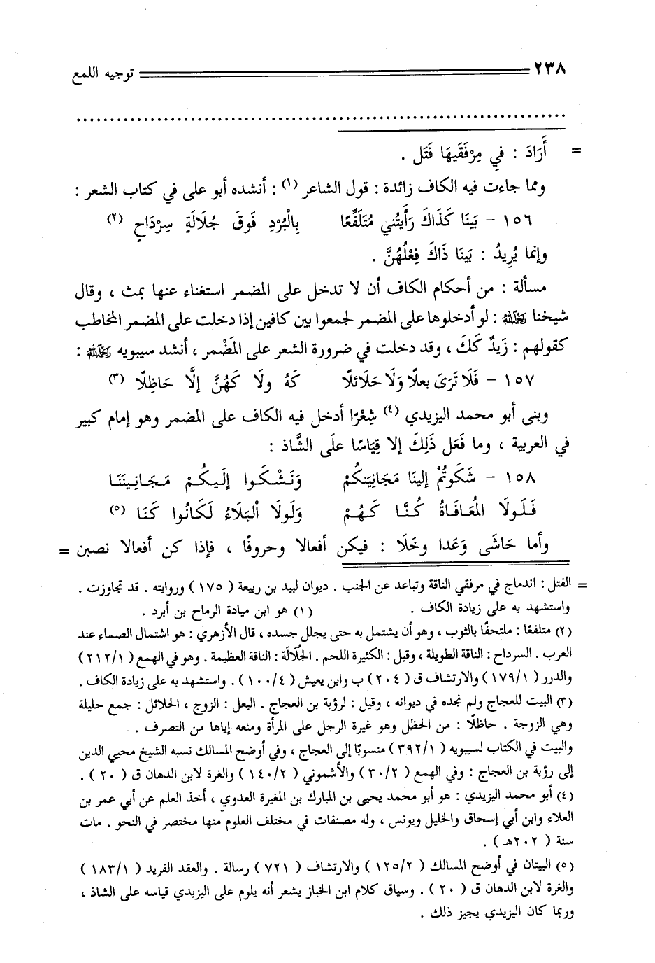 وبنى أبو محمد اليزيدي شعرًا أدخل فيه الكاف على المضمر وهو إمام كبير في العربية, وما فعل ذلك إلا قياسًا على الشاذ: