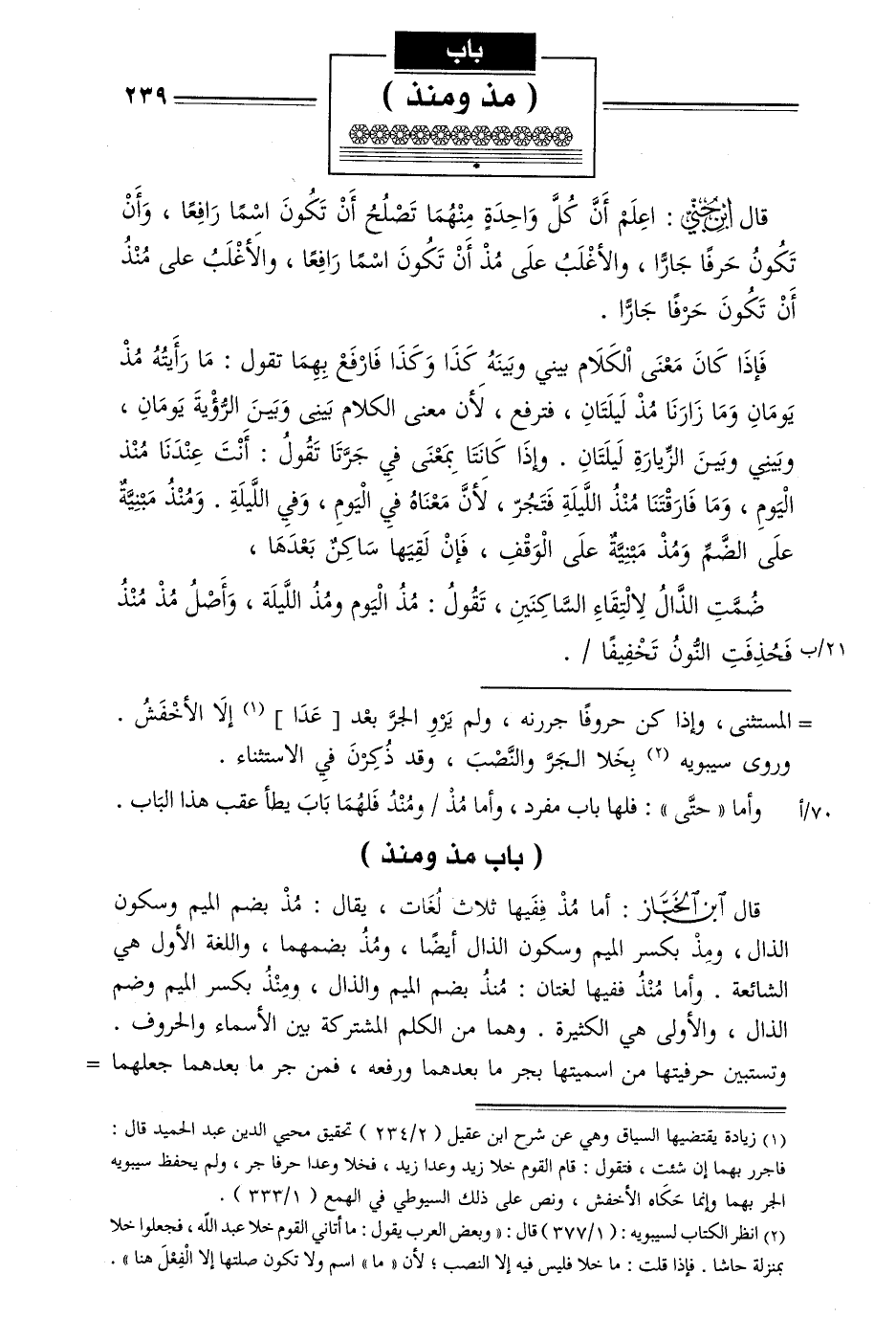 70/أوأما «حتى»: لإلها باب مفرد, وأما مذ/ ومنذ فلهما باب يطأ عقب هذا الباب.