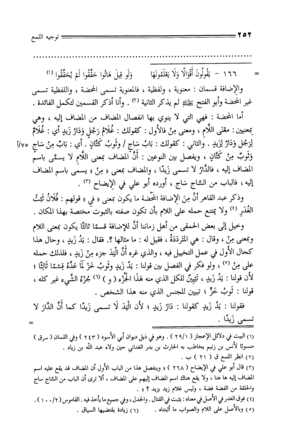 فقولنا: يد زيد كقولنا: دار زيد, لأن اليد لا تسمى زيدًا كما أن الدار لا تسمى زيدًا.