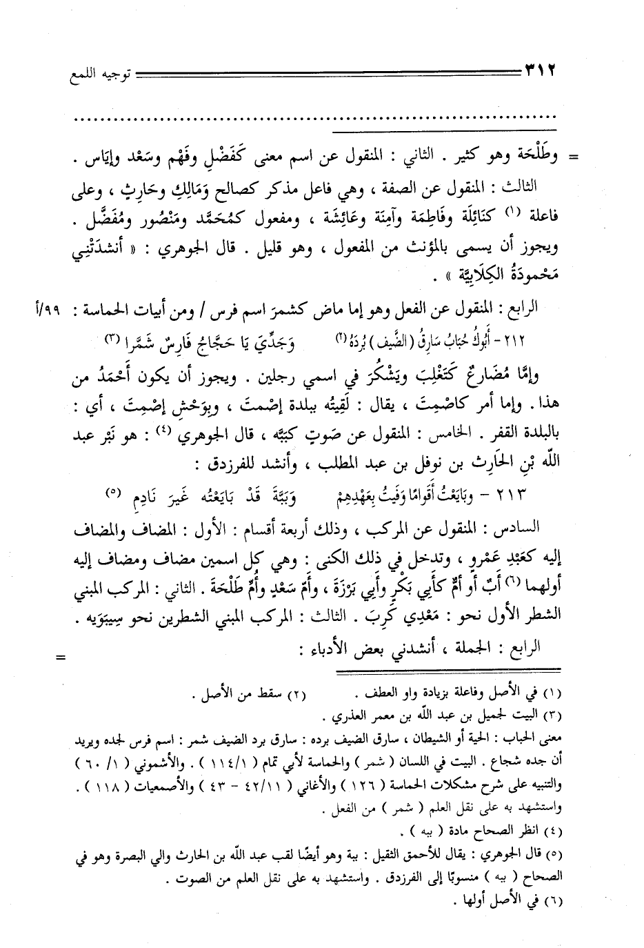 الرابع: المنقول عن الفعل وهو إما ماض كشمر اسم فرس / ومن أبيات الحماسة: