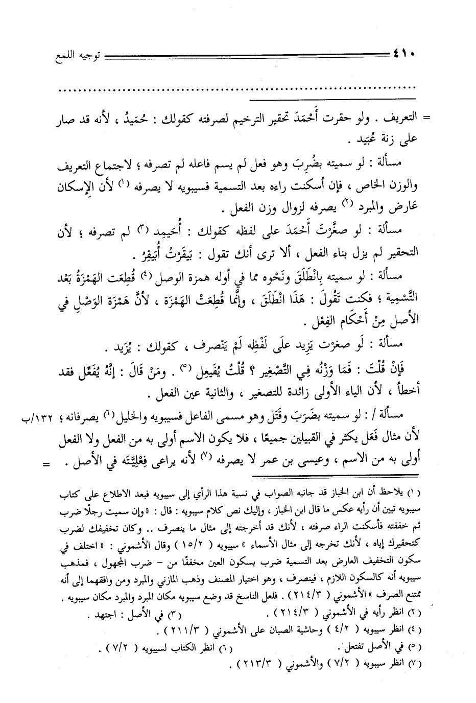 = التعريف. ولو حقرت أحمد تحقير الترخيم لصرفته كقولك: حميد, لأنه قد صار على زنة عبيد.