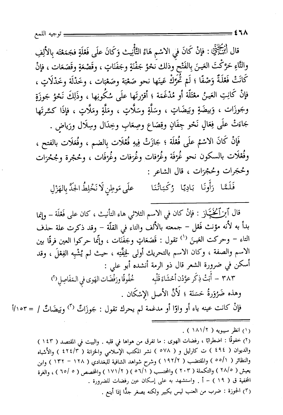 فإن كانت عينه ياء أو واواً أو مدغمة لم يحرك تقول: جوزات وبيضات / = 153/أ