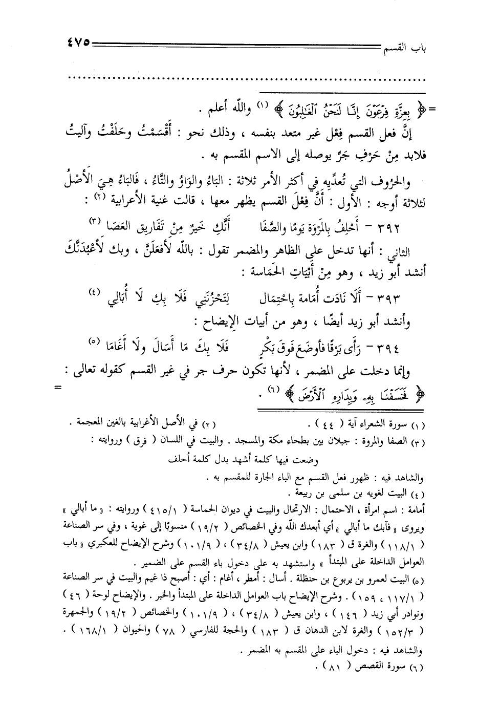 والحروف التي تعديه في أكثر الأمر ثلاثة: الباء والواو والتاء, فالباء هي الأصل لثلاثة أوجه: الأول: أن فعل القسم يظهر معها, قالت غنية الأعرابية: