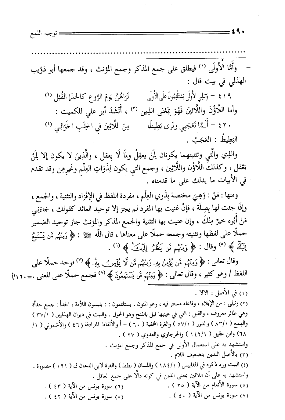 وأما اللاؤن واللائين فهو بمعنى الذين, أنشد أبو علي للكميت: