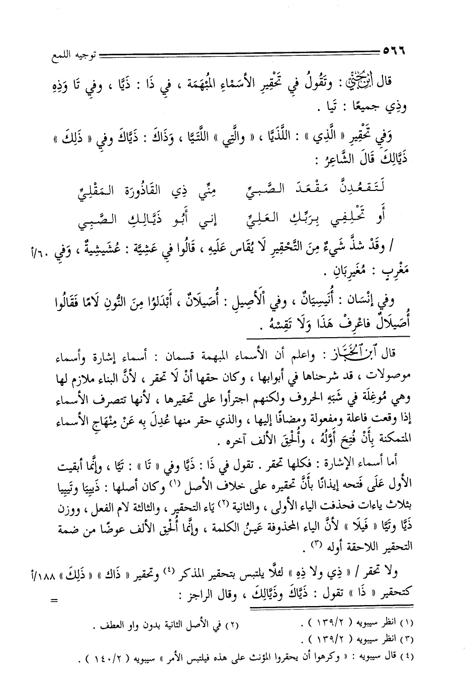 قال ابن جني: وتقول في تحقير المبهمة, في ذا: ذيا, وفي تا وذه وذي جميعًا: تيا.
