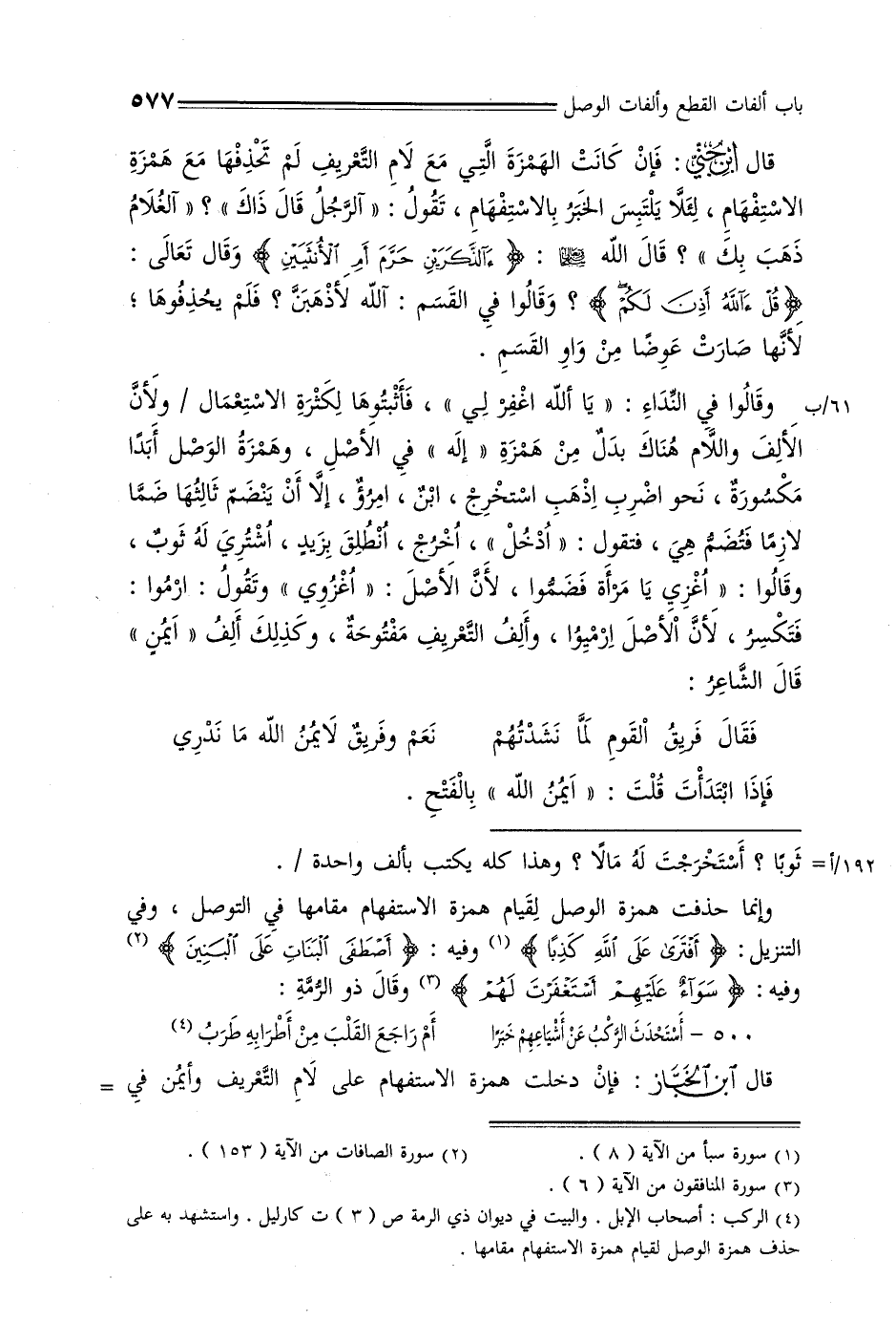 وإنما حذفت همزة الوصل لقيام همزة الاستفهام مقامها في التوصل, وفي التنزيل: {أفترى على الله كذبًا} وفيه: {اصطفى البنات على البنين} وفيه: {سواء عليهم استغفرت لهم} وقال ذو الرمة: