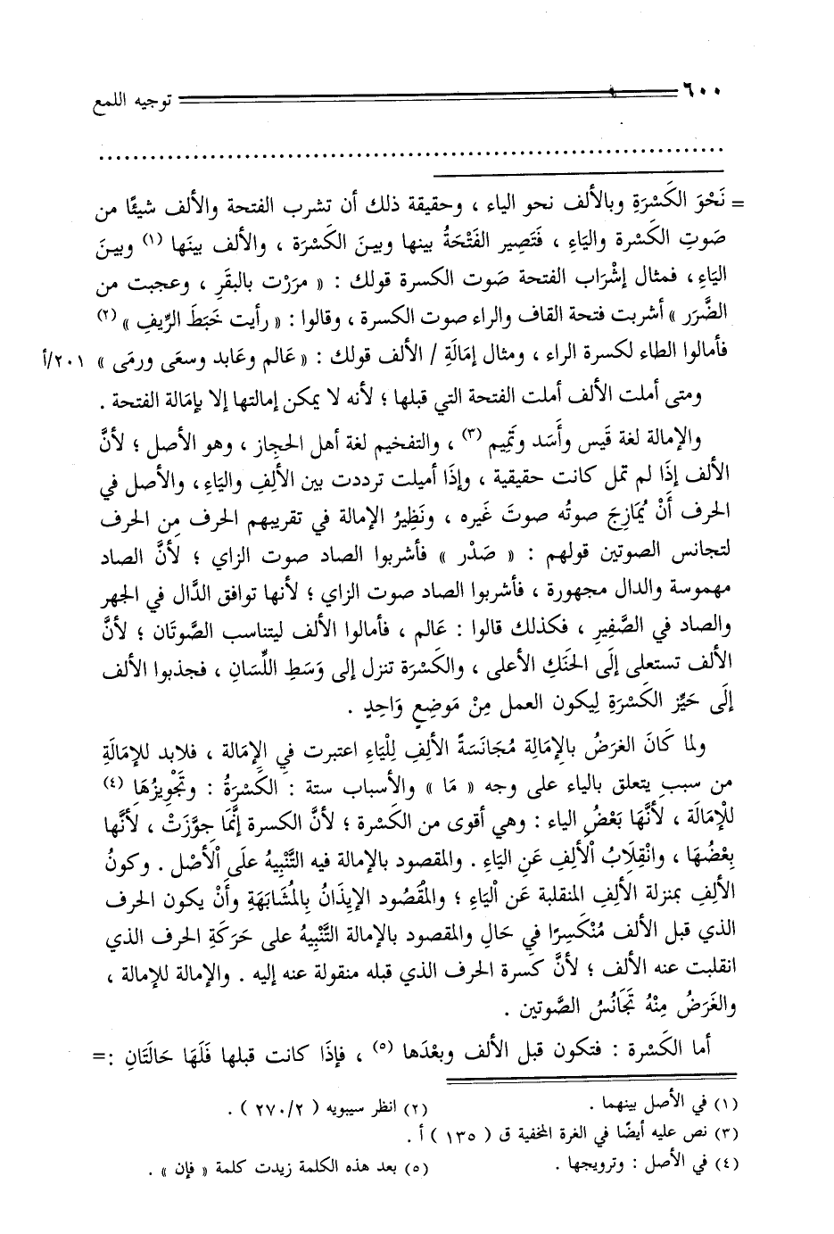 = نحو الكسرة وبالألف نحو الياء, وحقيقة ذلك أن تشرب الفتحة والألف شيئًا من صوت الكسرة والياء, فتصير الفتحة بينها وبين الكسرة, والألف بينها وبين الياء, فمثال إشراب الفتحة صوت الكسرة قولك: «مررت بالبقر, وعجبت من الضرر» أشربت فتحة القاف والراء صوت الكسرة, وقالوا: «رأيت خبط الريف» فأمالوا الطاء لكسرة الراء, ومثال إمالة/ الألف قولك: «عالم وعابد وسعى ورمى» ومتى أملت الألف أملت الفتحة التي قبلها, لأنه لا يمكن إمالتها إلا بإمالة الفتحة.