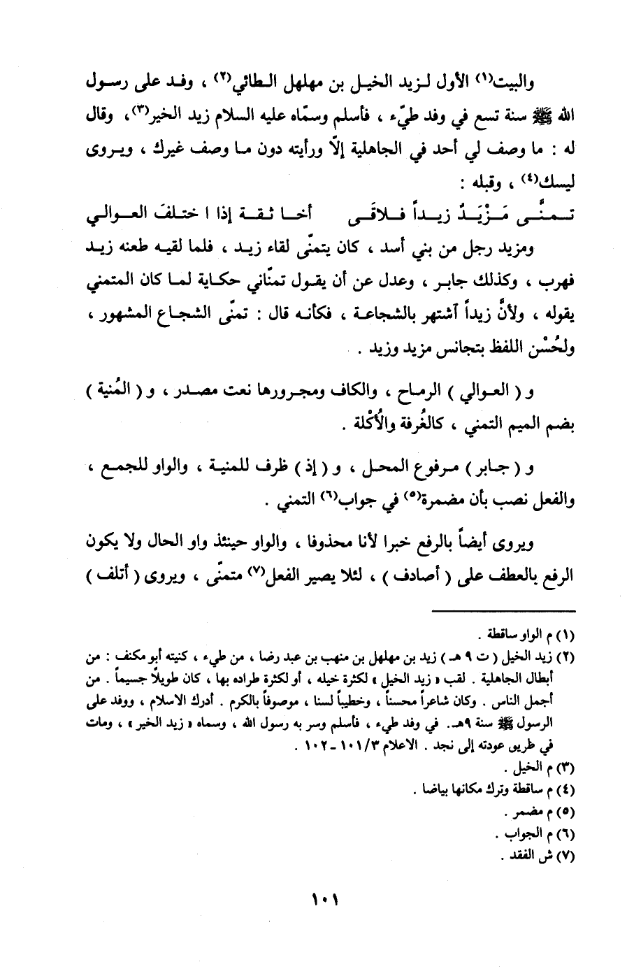 ومزيد رجل من بني أسد، كان يتمنى لقاء زيد، فلما لقيه طعنه زيد فهرب، وكذلك جابر، وعدل عن أن يقول تمناني حكاية لما كان المتمني بقوله، ولأن زيدًا اشتهر بالشجاعة، فكأنه قال: تمنى الشجاع المشهور، ولحُسْن اللفظ بتجانس مزيد وزيد.