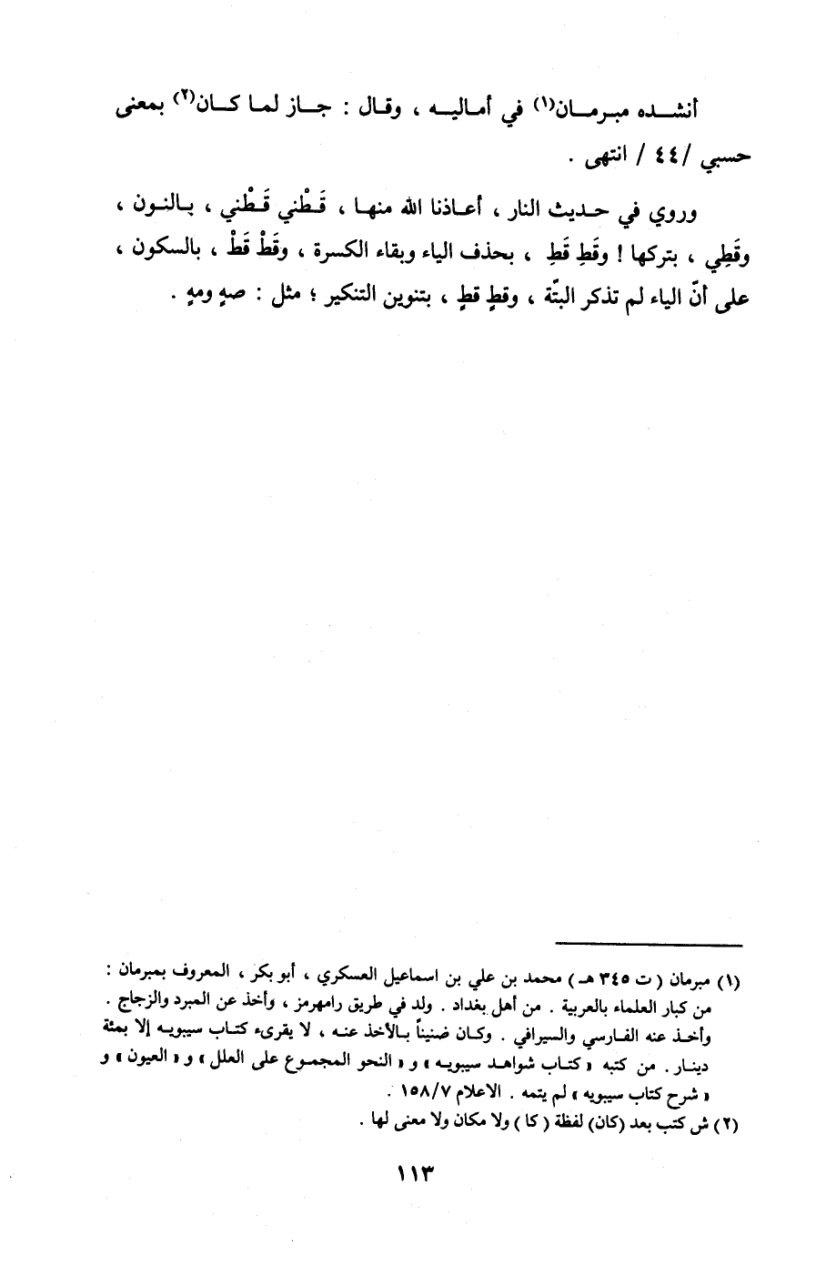 أنشده مبرمان في أماليه، وقال: جاز لما كان بمعنى حسبي /44/ انتهى.
