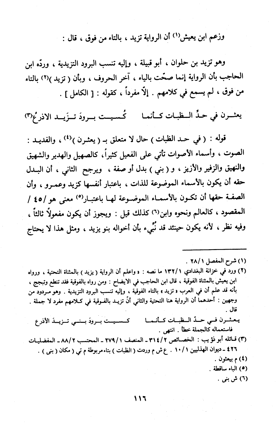وزعم ابن يعيش أن الرواية تزيد، بالتاء من فوق، قال: