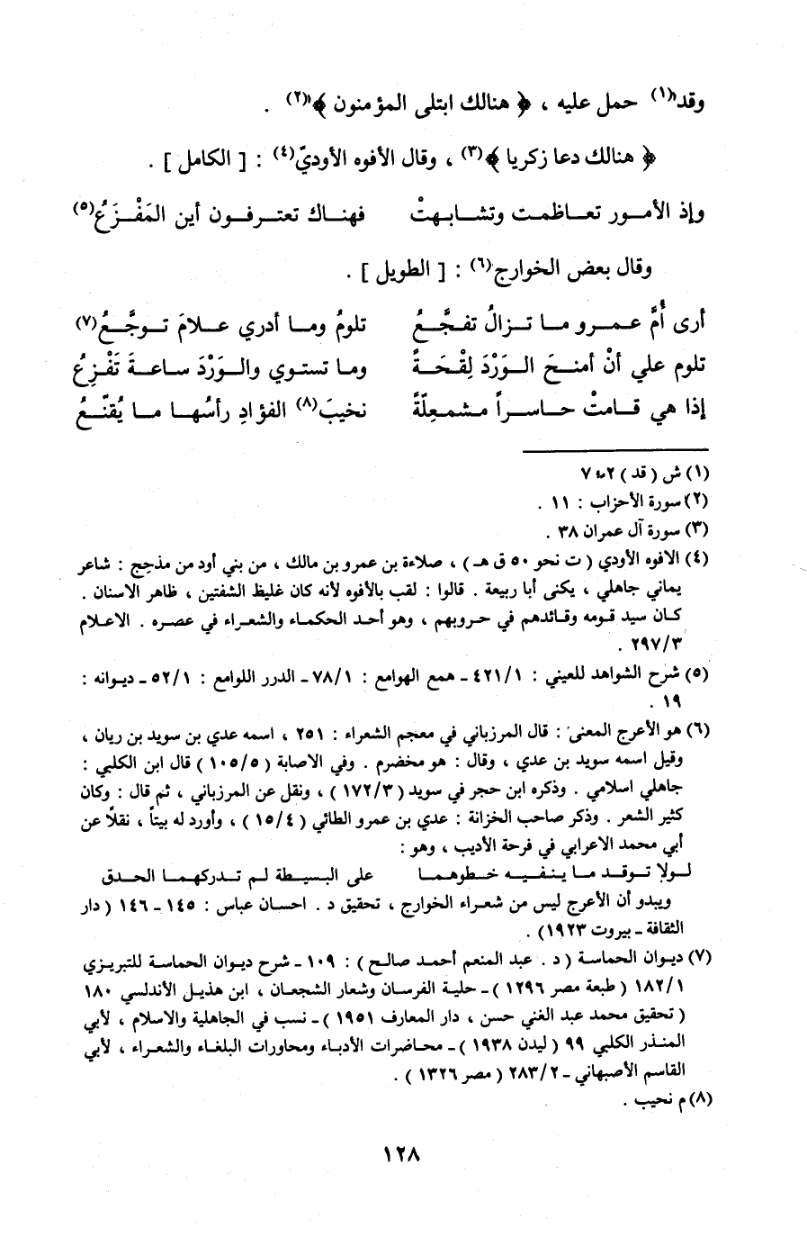 {هُنَالِكَ دَعَا زَكَرِيَّا}، وقال الأفوه الأودي: [الكامل].