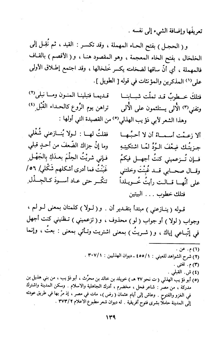 (على أنها قالت رأيتُ خُويلدًا ... تنكّر حتى عاد أسودَ كالجِذْلِ)