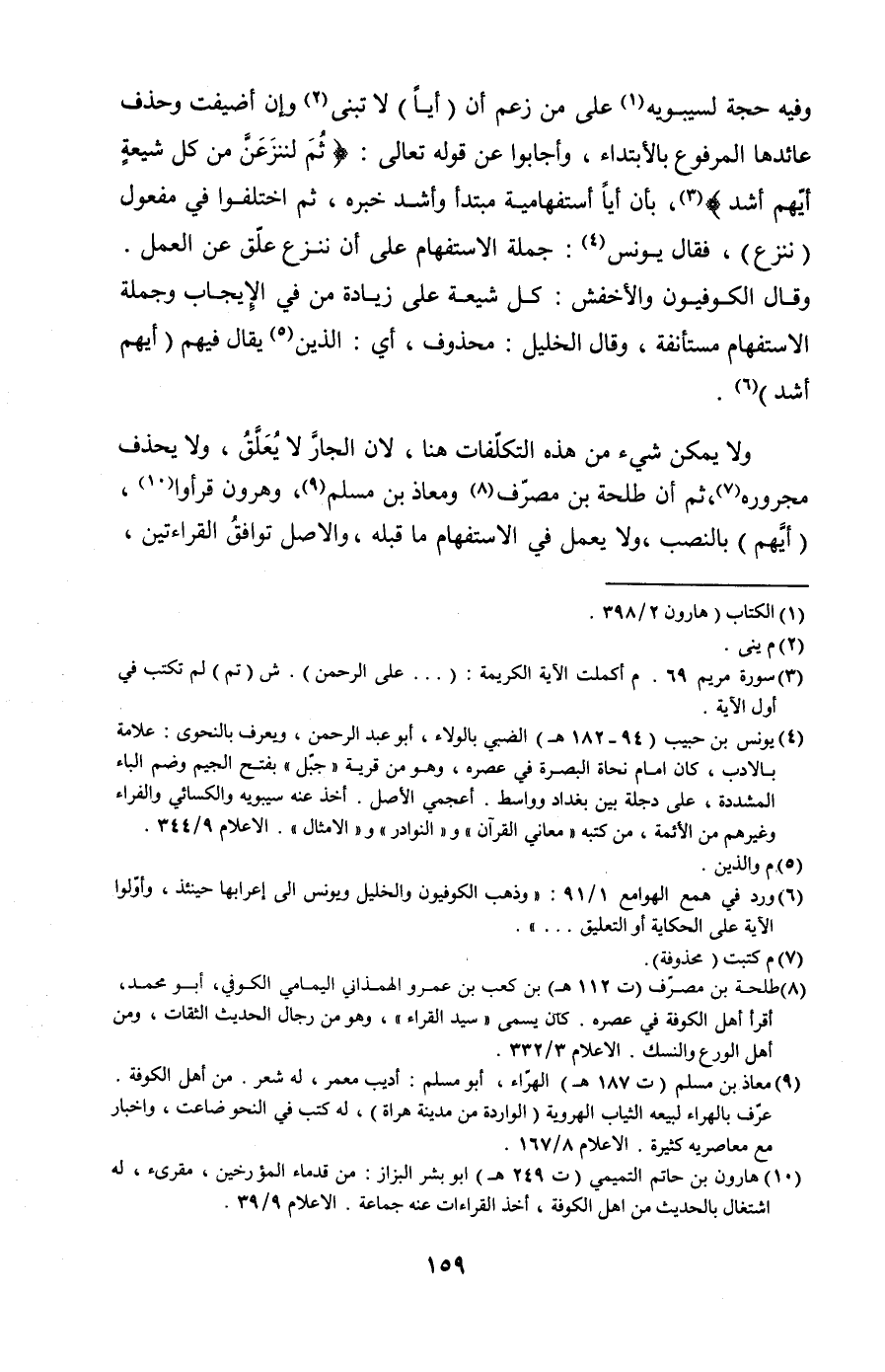 وفيه حجة لسيبويه على من زعم أن (أيًا) لا تبني وإن أضيفت وحذف عائدها المرفوع بالابتداء، وأجابوا عن قوله تعالى: {ثُمَّ لَنَنْزِعَنَّ مِنْ كُلِّ شِيعَةٍ أَيُّهُمْ أَشَدُّ}، بأن أيًا استفهامية مبتدأ وأشد خبره، ثم اختلفوا في مفعول (ننزع)، فقال يونس: جملة الاستفهام على أن ننزع علق عن العمل.