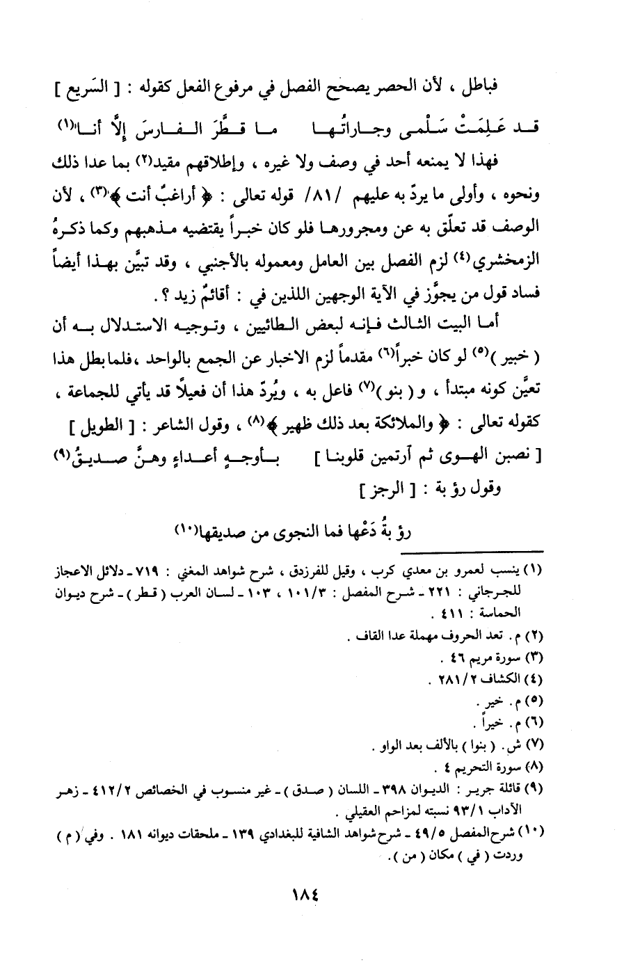 فهذا لا يمنعه أحد في وصف ولا غيره، وإطلاقهم مقيد بما عدا ذلك ونحوه، وأولى ما يردّ به عليهم /81/ قوله تعالى {أَراغِبٌ أَنْتَ}، لأن الوصف قد تعلق به عن ومجرورها فلو كان خبرًا يقتضيه مذهبهم وكما ذكرهُ الزمخشري لزم الفصل بين العامل ومعموله بالأجنبي، وقد تبين بهذا أيضًا فساد قول من يجوز في الآية الوجهين اللذين في: أقائمٌ زيد.