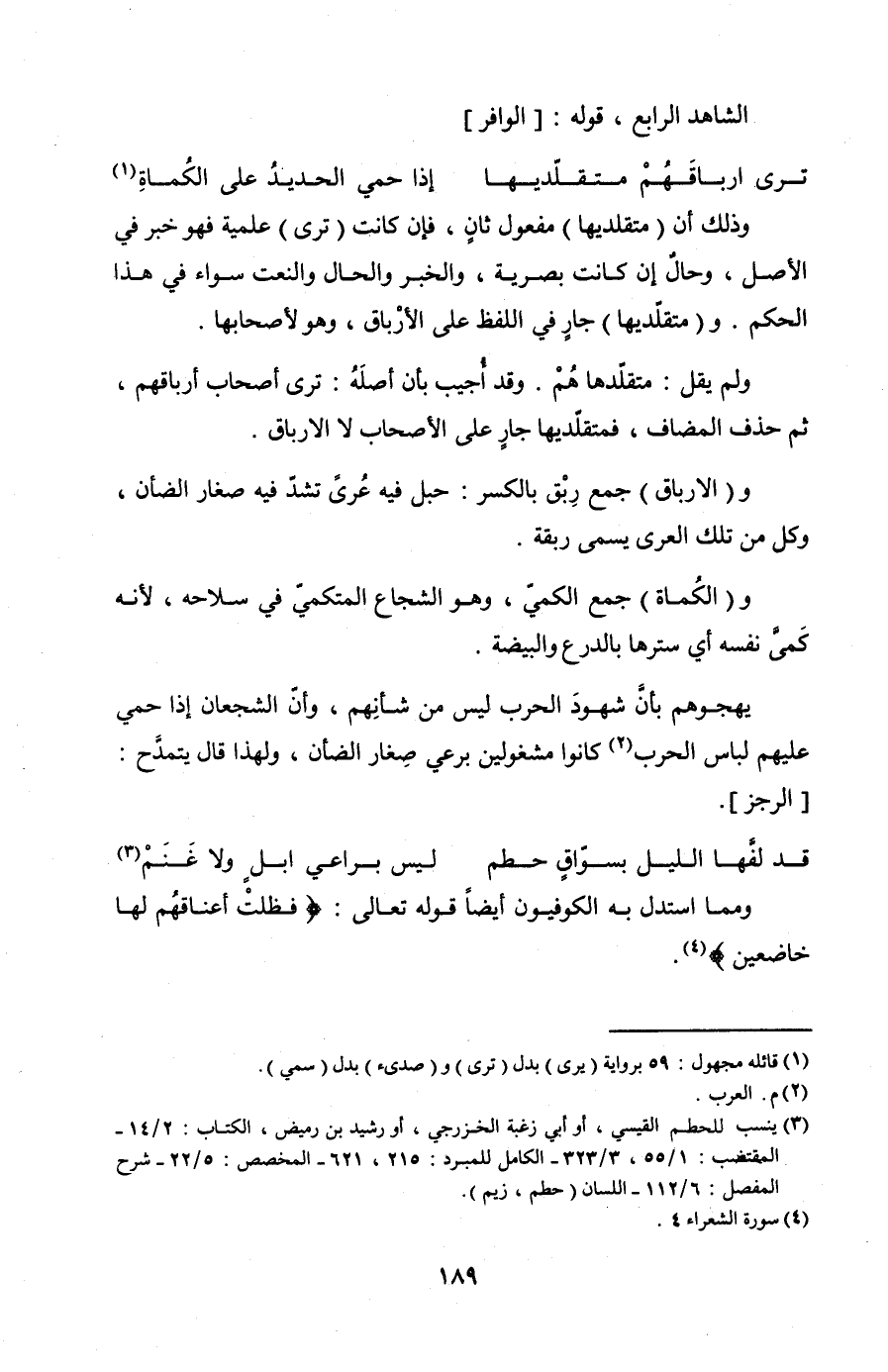 (ترى ارباقَهُمْ متقلديها ... إذا حمي الحديدُ على الكُماةِ)