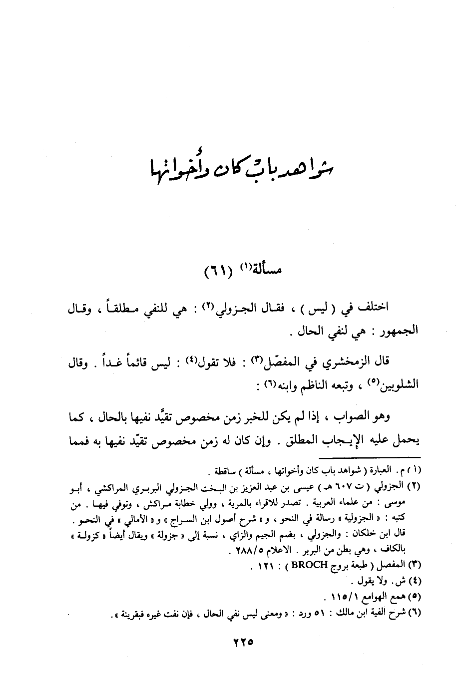 اختلف في (ليس)، فقال الجزولي: هي للنفي مطلقًا، وقال الجمهور: هي لنفي الحال.