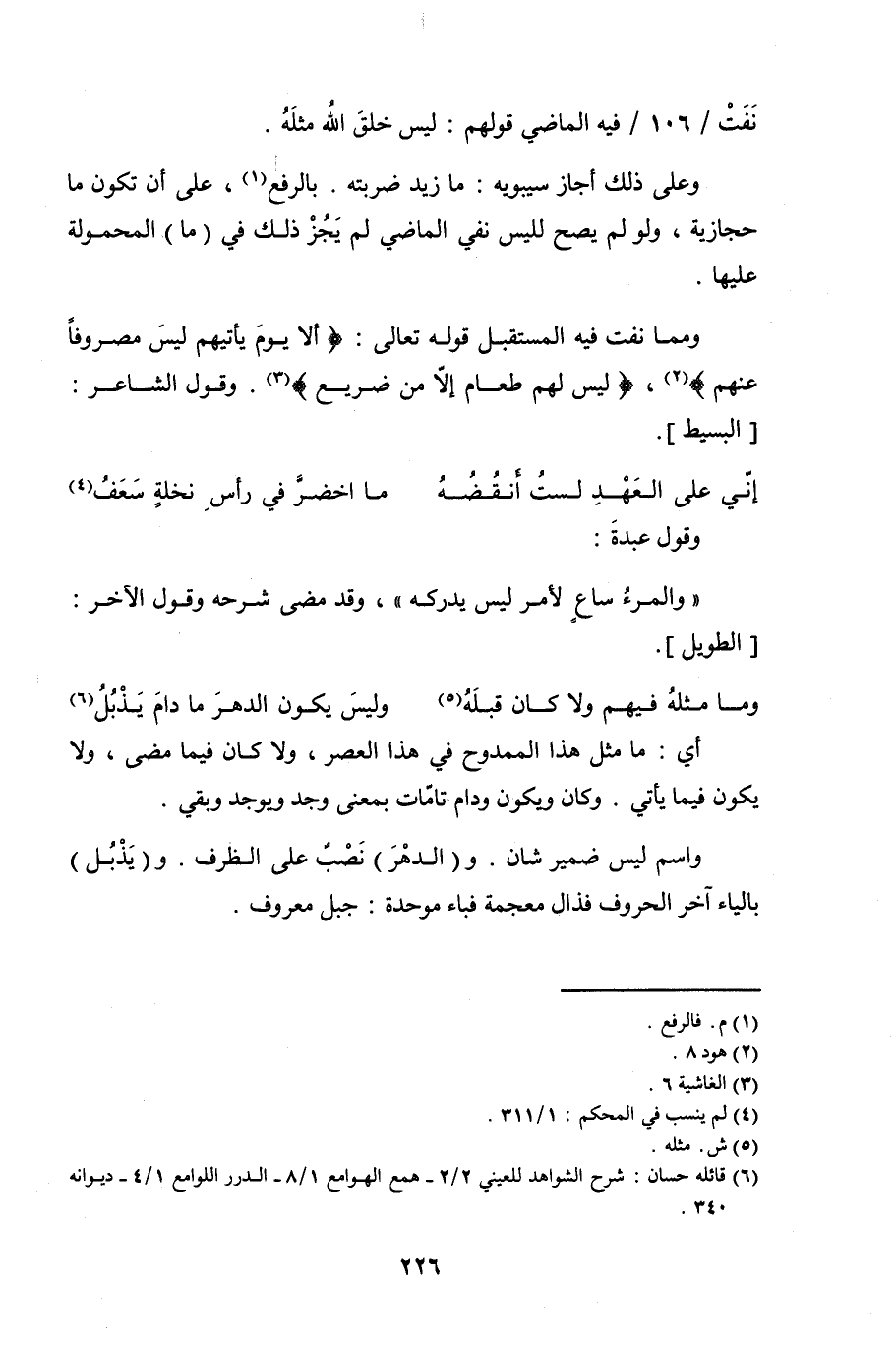 نَفَتْ /106/ فيه الماضي قولهم: ليس خلقّ الله مثلهُ.