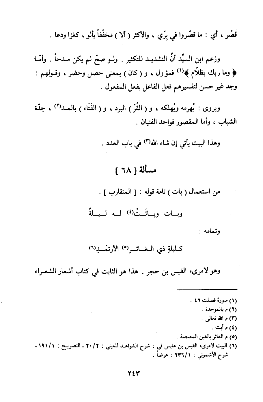 وزعم ابن السيد أن التشديد للتكثير، ولو صح لم يكن مدحًا. وأما: {وَمَا رَبُّكَ بِظَلَّامٍ} فمؤول، و (كان) بمعنى حصل وحضر، وقولهم: وجد غير حسن لتفسيرهم فعل الفاعل بفعل المفعول.