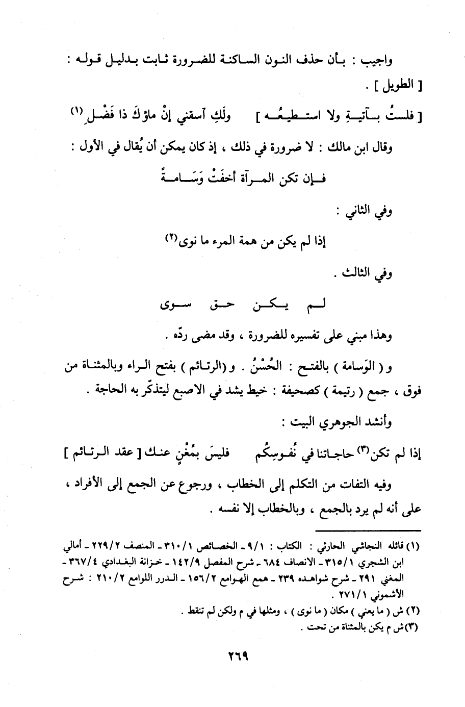وأجيب: بأن حذف النون الساكنة للضرورة ثابت بدليل قوله: [الطويل].