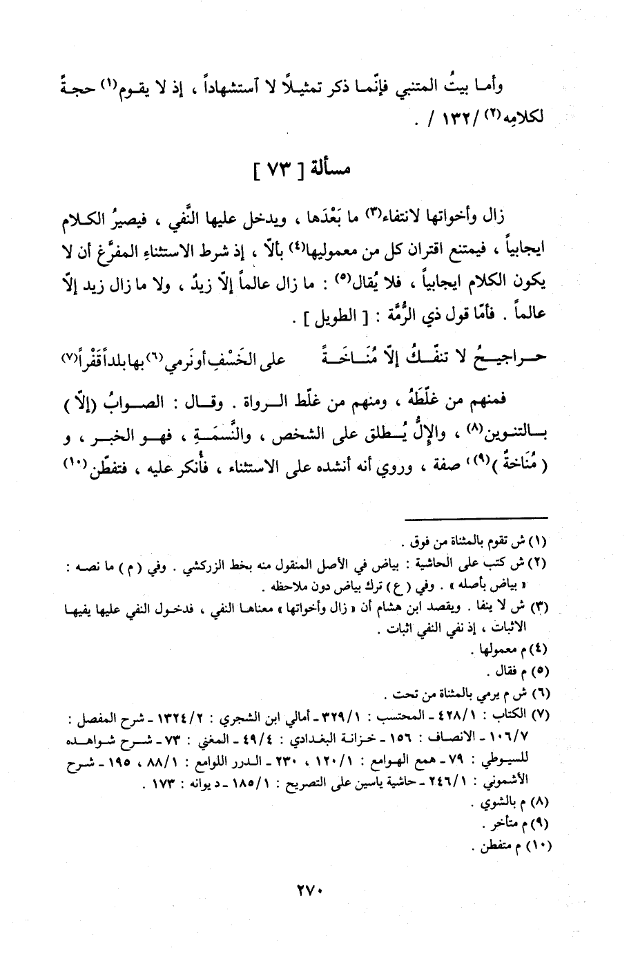 وأما بيتُ المتنبي فإنّما ذكر تمثيلاً لا استشهادًا، إذ لا يقوم حجةً لكلامِه /132/.