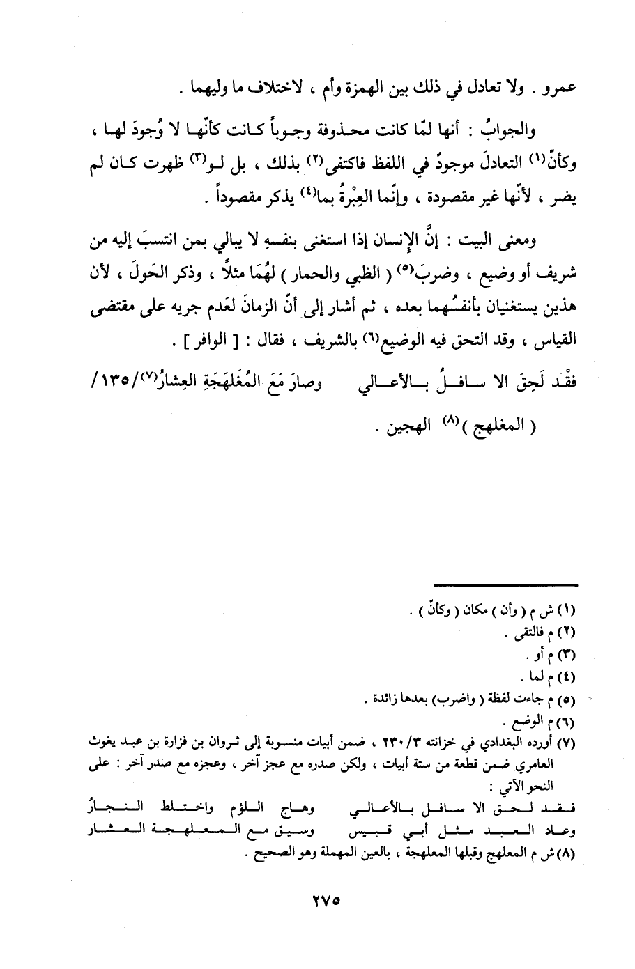 (فقْد لَحِقَ إلا سافلُ بالأعالي ... وصارَ مَعَ المُغَلهَجَةِ العِشارُ /135/)