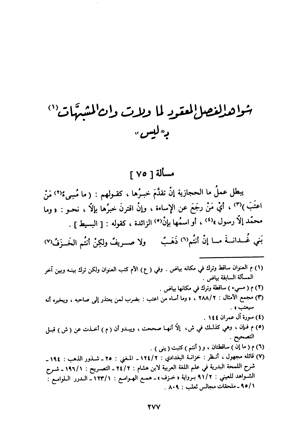 شواهد الفصل المعقود لما ولات وأن المشبهَّات بـ"ليس"