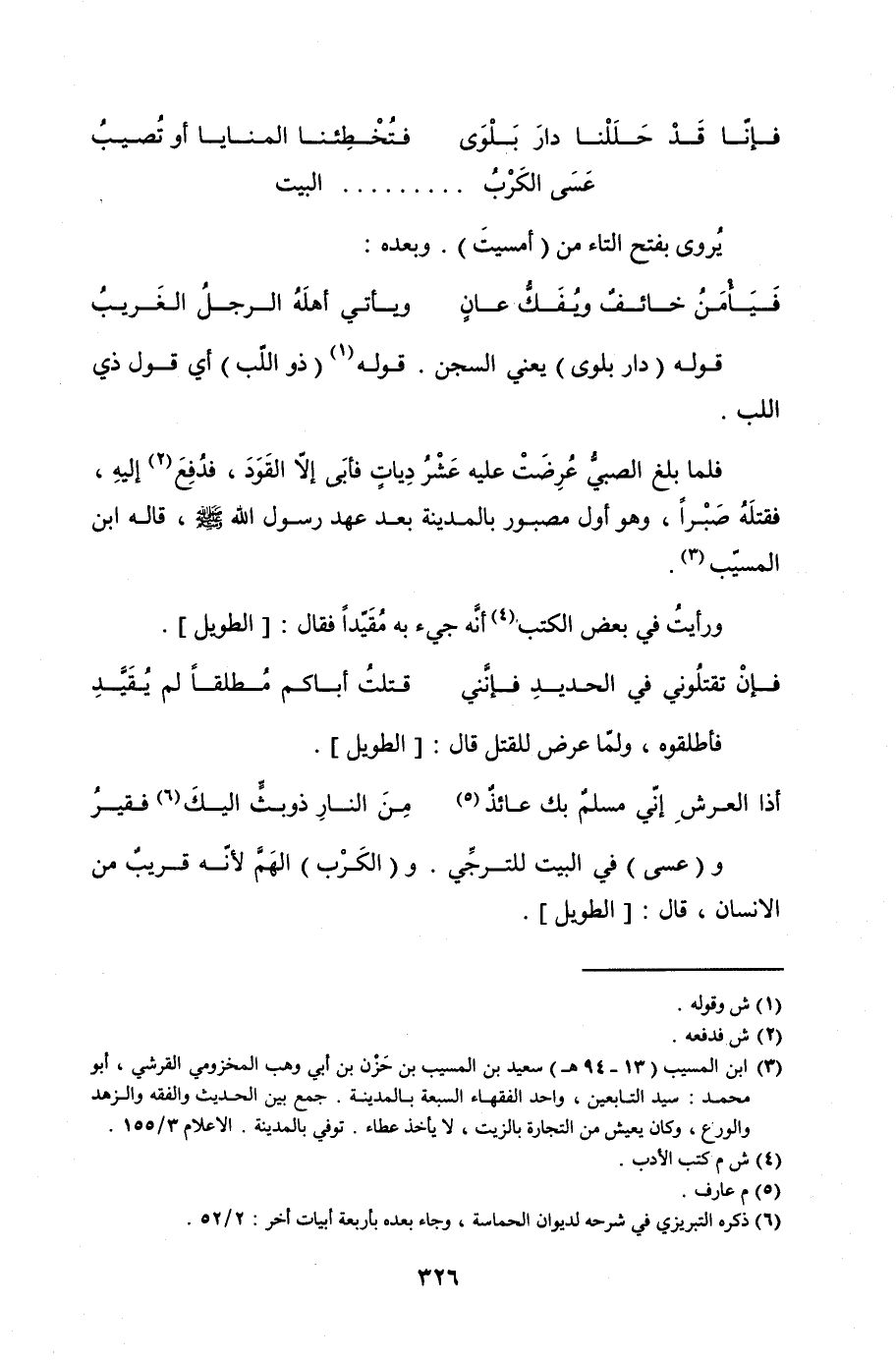 (فإنا قد حللنا دار بلوى ... فتخطئنا المنايا أو تصيب)