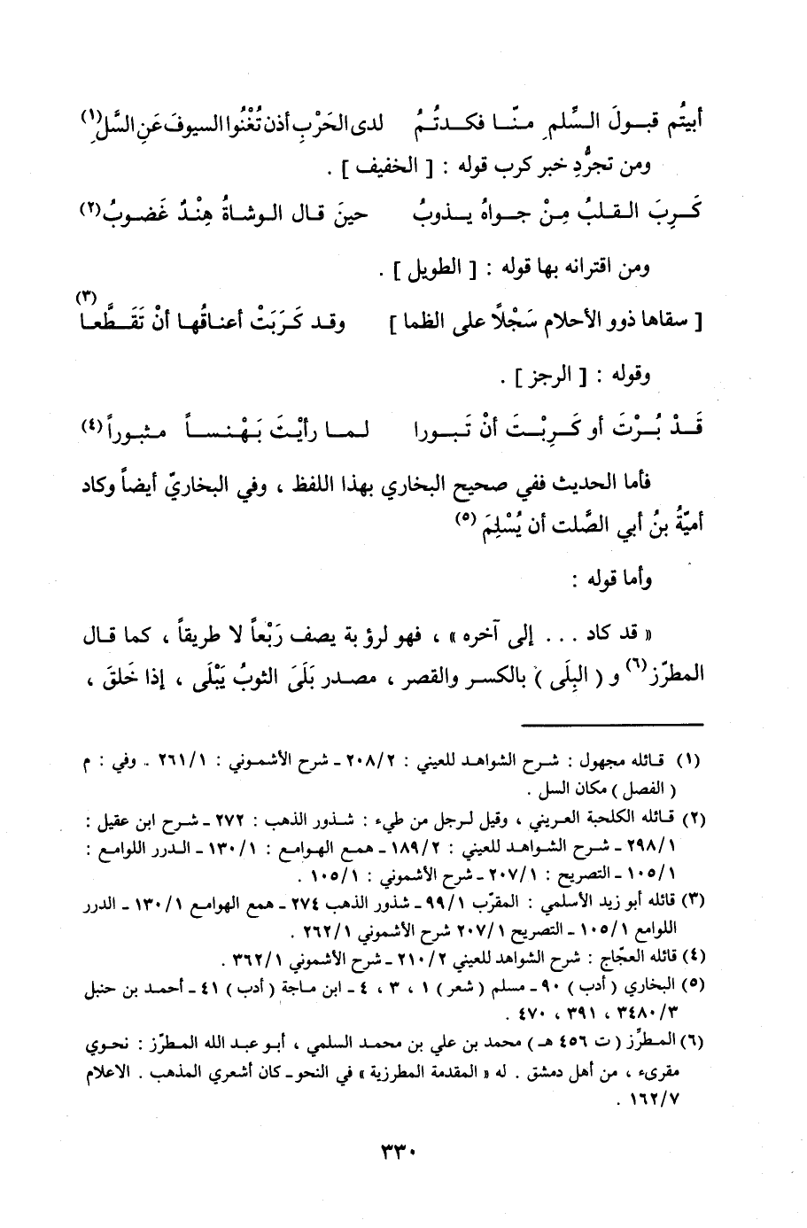ومن تجرد خبر كرب قوله: (الخفيف).